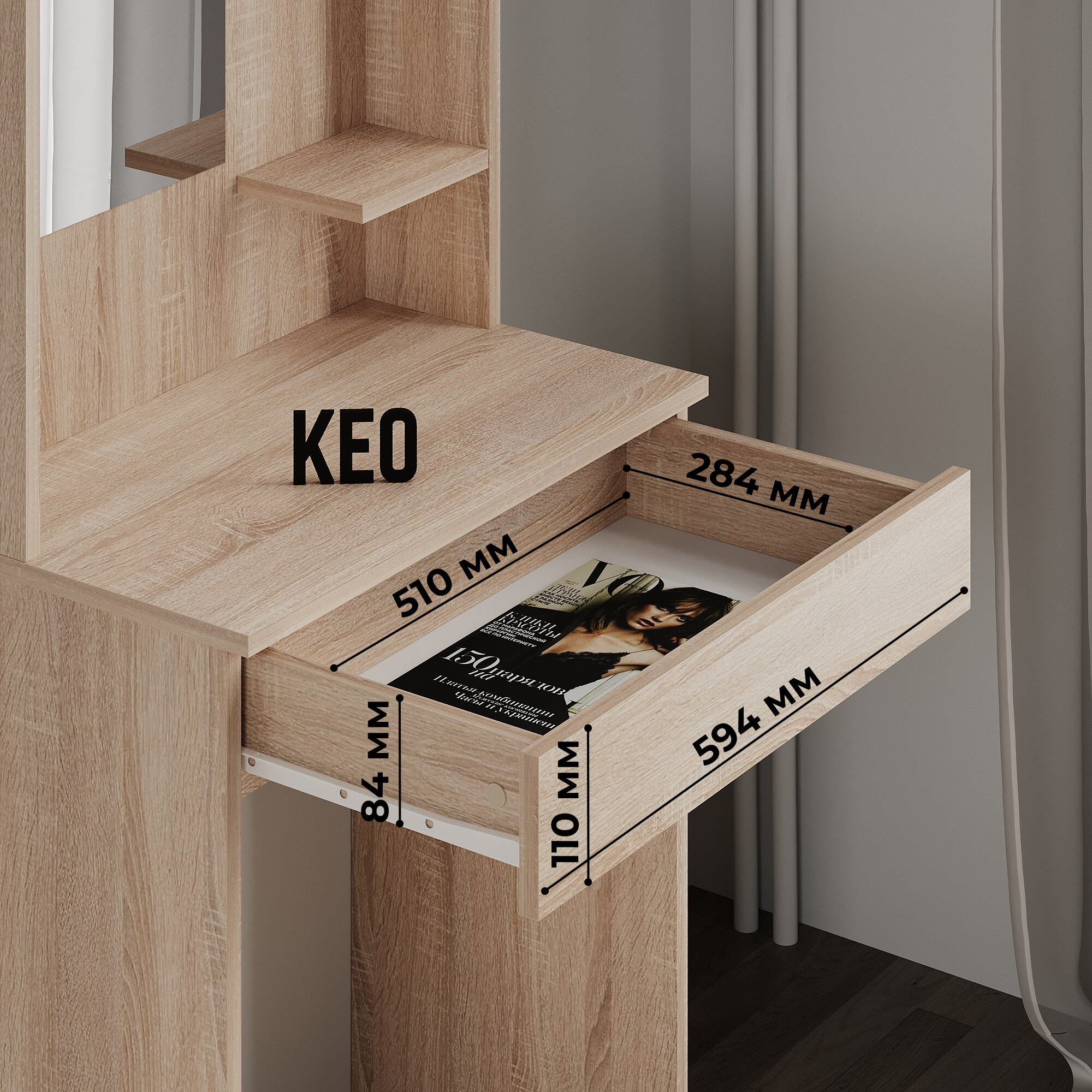 Туалетный столик с зеркалом для спальни гостиной детской Кео СТЛ-130-Сонома информация: