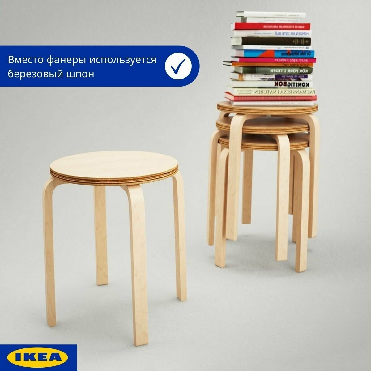 Табуретки для кухни комплект 4 шт, береза. Табурет икеа. Деревянные табуреты 4 822 ₽