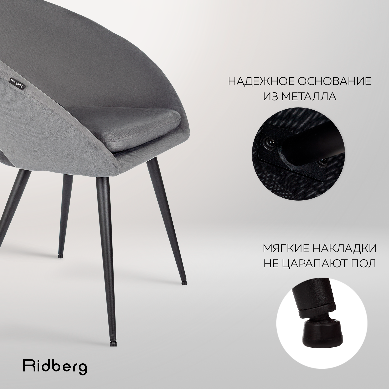 Отзывы на Стул для кухни Ridberg Dakline (велюр, серый), столовой, гостиной, офисный, компьютерный, кухонный, со спинкой, на ножках, мягкий, 1 шт.