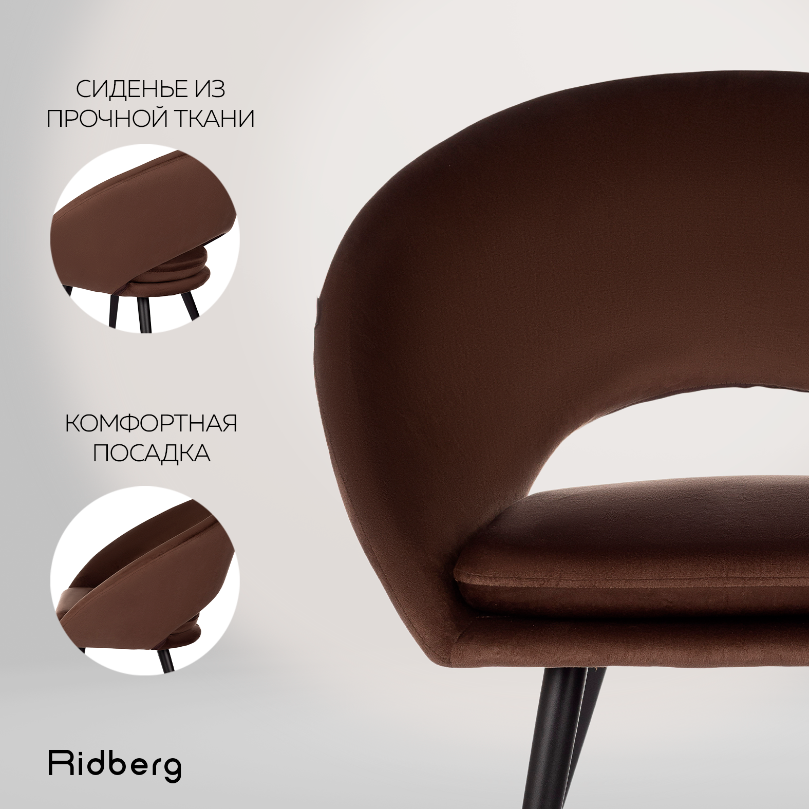 Отзывы на Комплект стульев Ridberg DAKLINE 2 шт. (велюр, коричневое), столовой, гостиной, офисный, компьютерный, кухонный, со спинкой, на ножках, мягкий