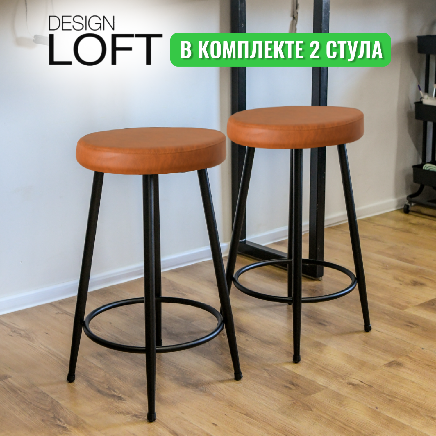 10 цен на Полубарные стулья лофт, комплект из 2 штук, высота 65 см, кожзам рыжего цвета