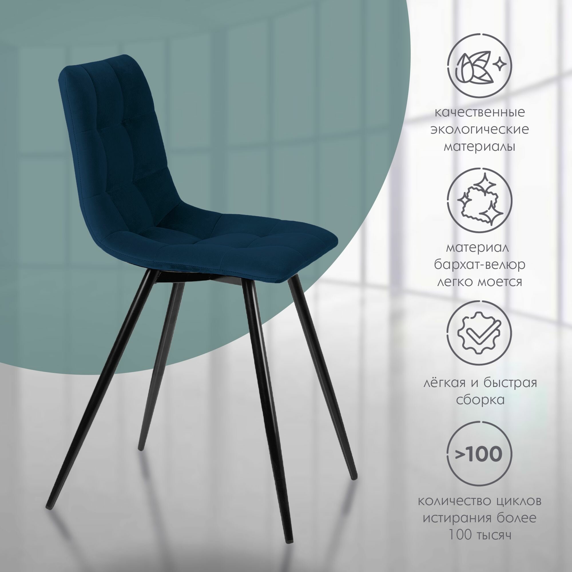 Стул для кухни Pixel, мягкий, велюр, синий 1шт 6 660 ₽