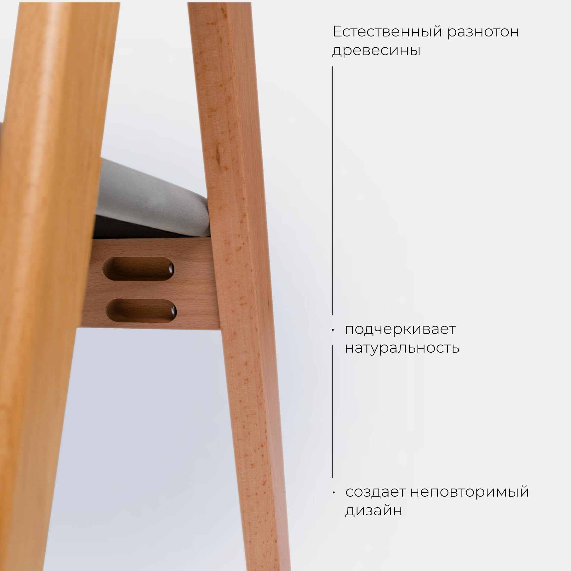 Стул кухонный мягкий со спинкой Drezden, обивка - серый велюр, каркас - натуральное дерево, для дома, дачи, кухни, гостиной и письменного стола информация: