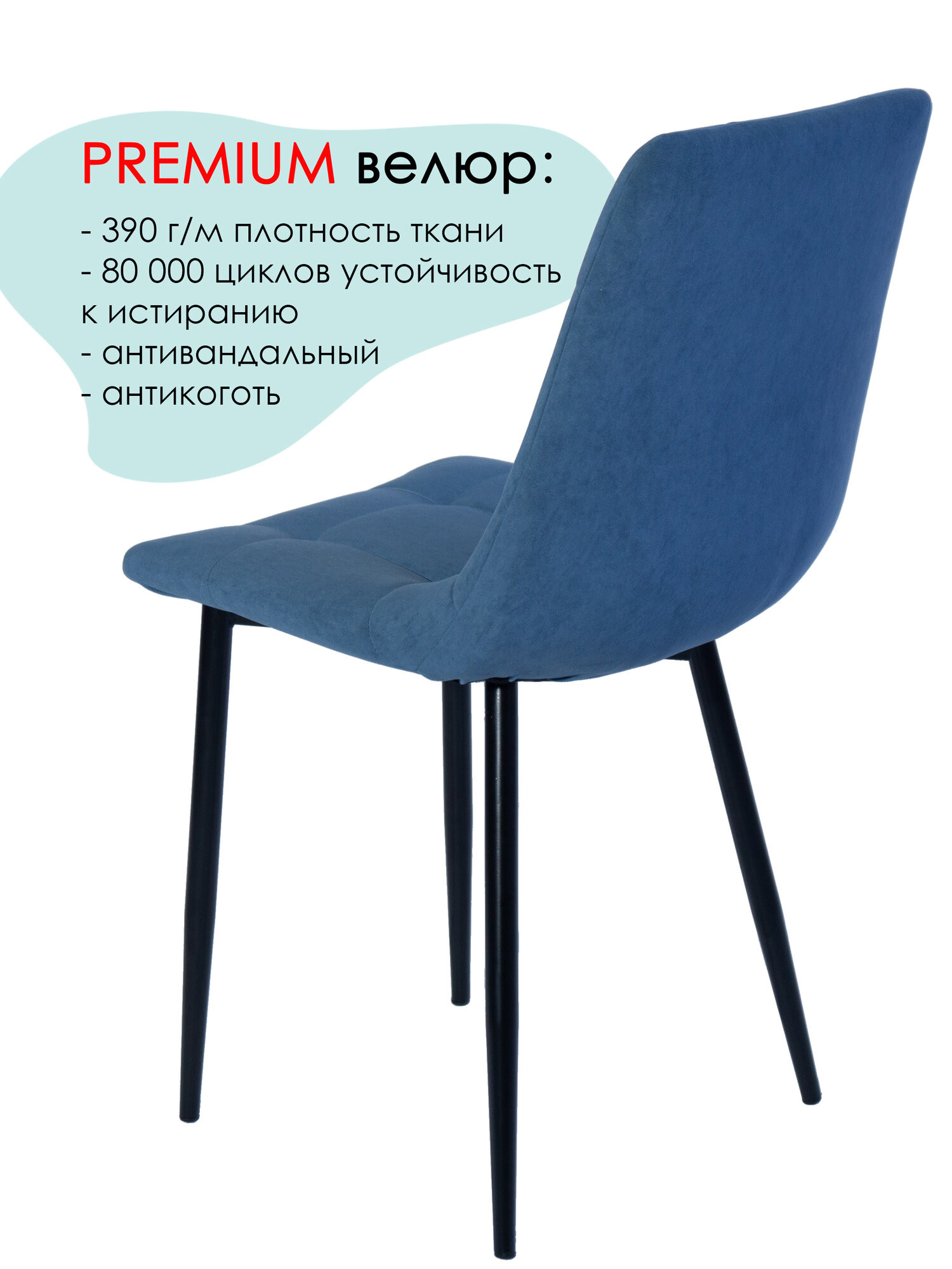 Отзывы на Стул мягкий для кухни, комплект из 4 кухонных стульев чили, велюр, синие, черные ножки