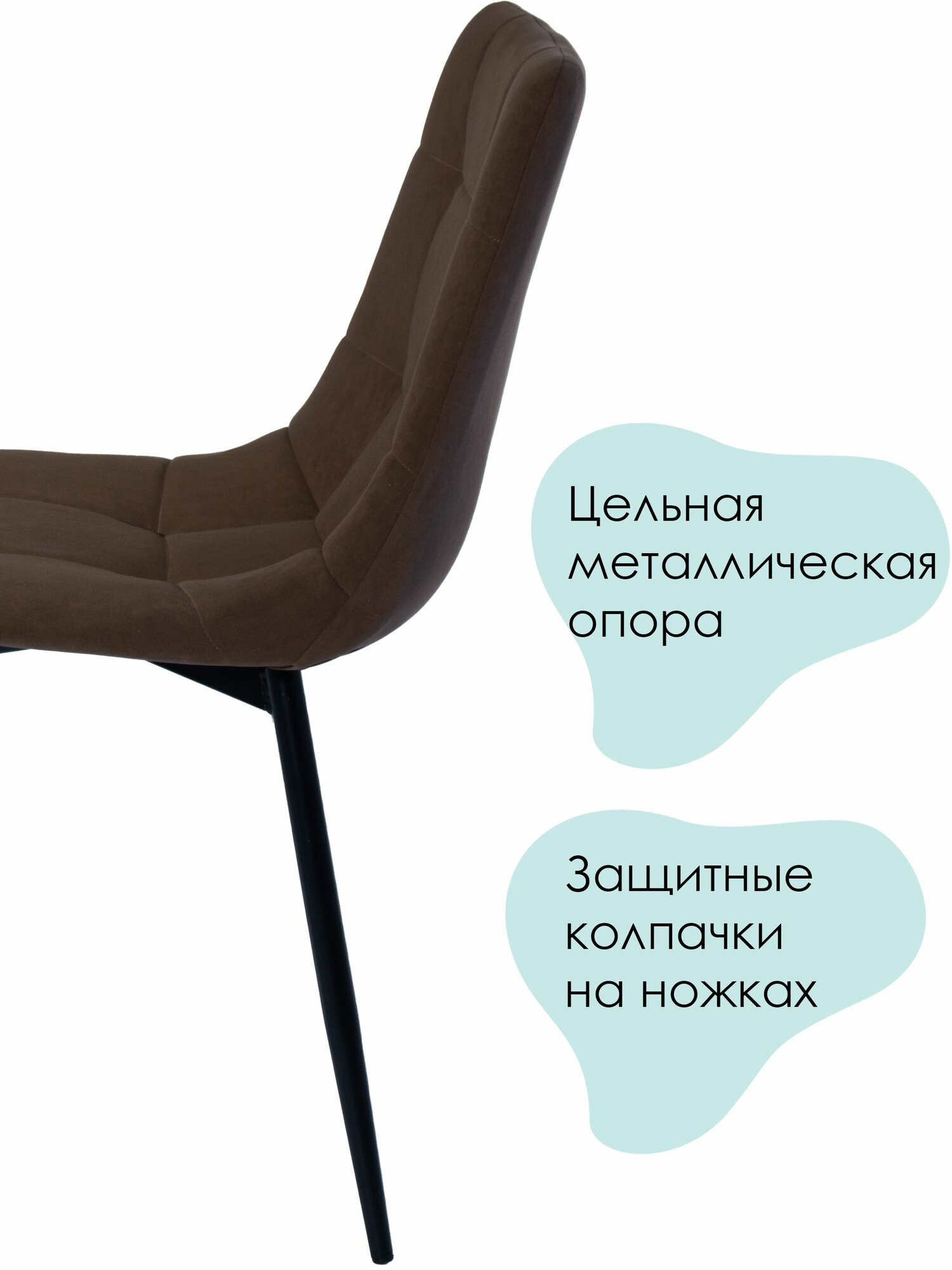Стул мягкий для кухни, комплект из 2 кухонных стульев чили, велюр, коричневые, черные ножки 9 000 ₽