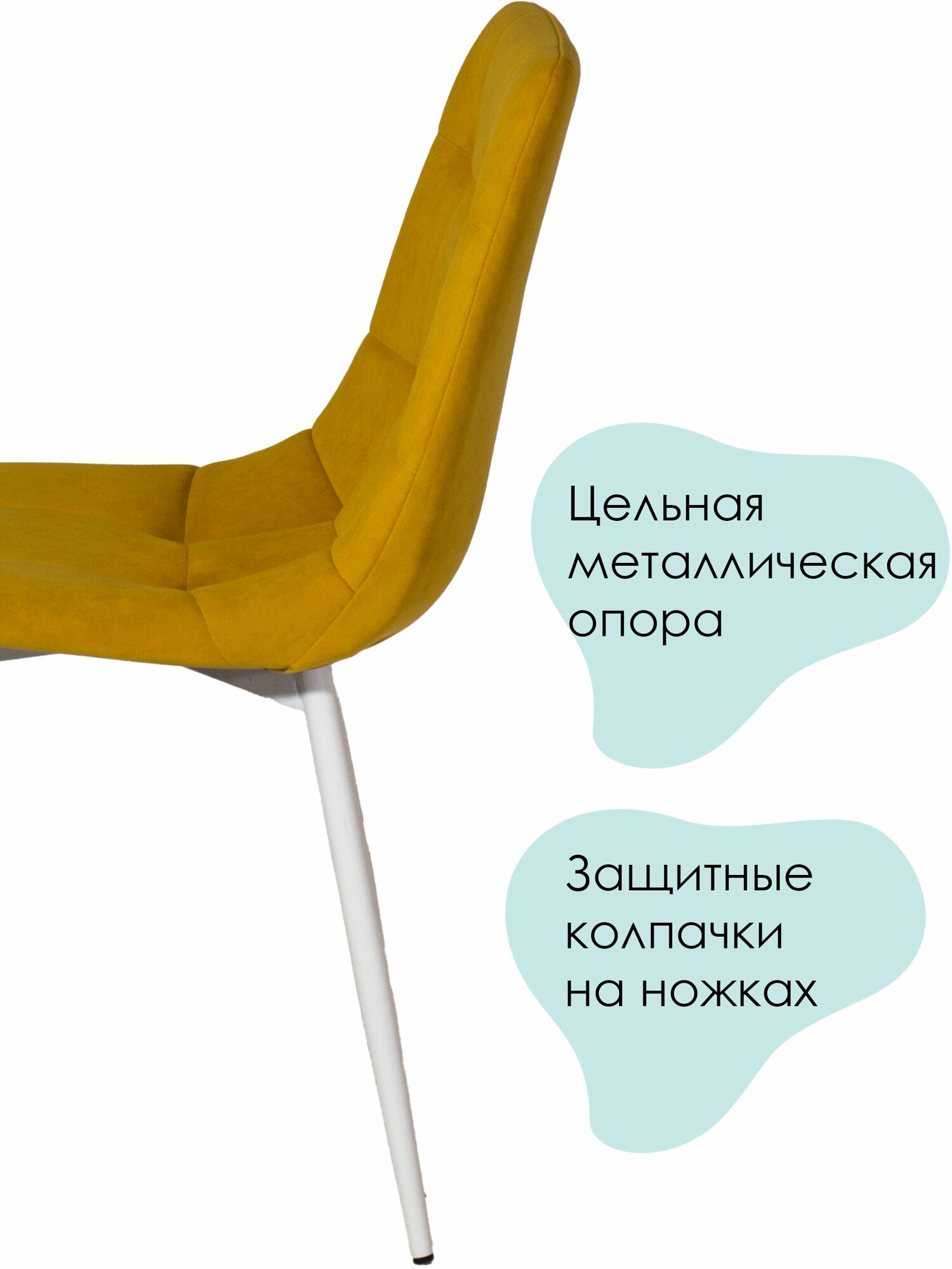 Стул мягкий для кухни, комплект из 2 кухонных стульев чили, велюр, желтые, белые ножки 9 000 ₽