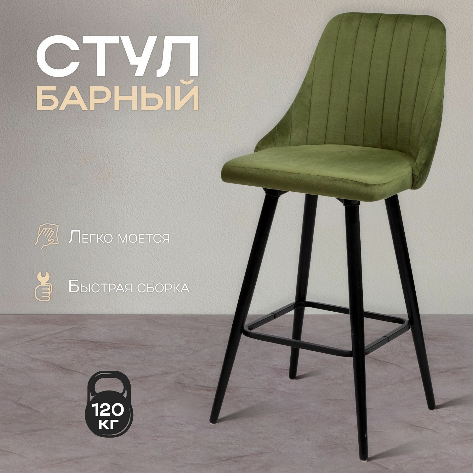 Отзывы на Барный стул со спинкой Лондон, ножки деревянные высокие, мягкий, обеденный для кухни, гостиной, для дома, обивка вельвет оливковый, АМИ мебель, Беларусь