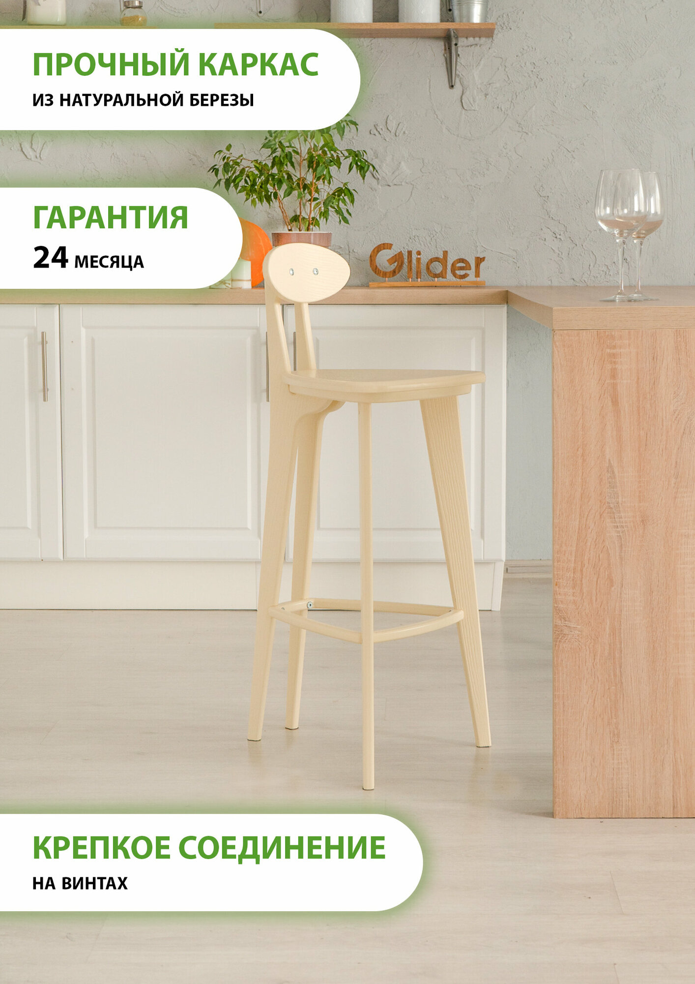 Отзывы на Барный стул Glider деревянный со спинкой 4 прямые ножки кухонный, цвет бежевый