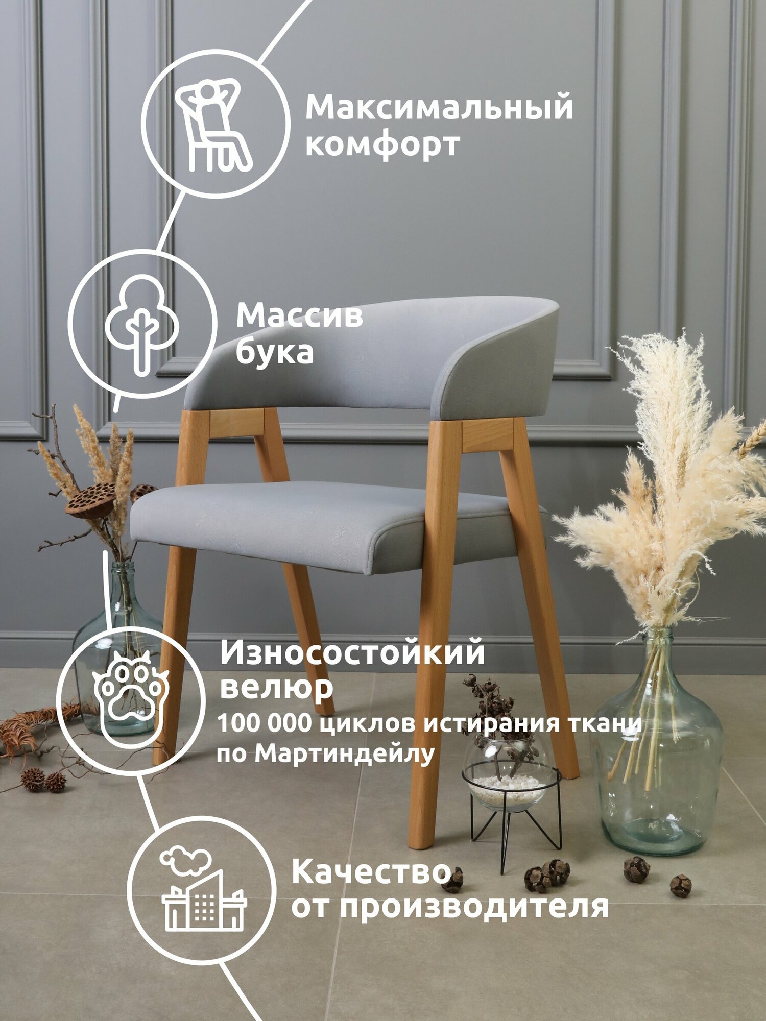 Стул кресло Монтана, мягкий стул для кухни и гостиной, стулья со спинкой из натурального дерева информация: