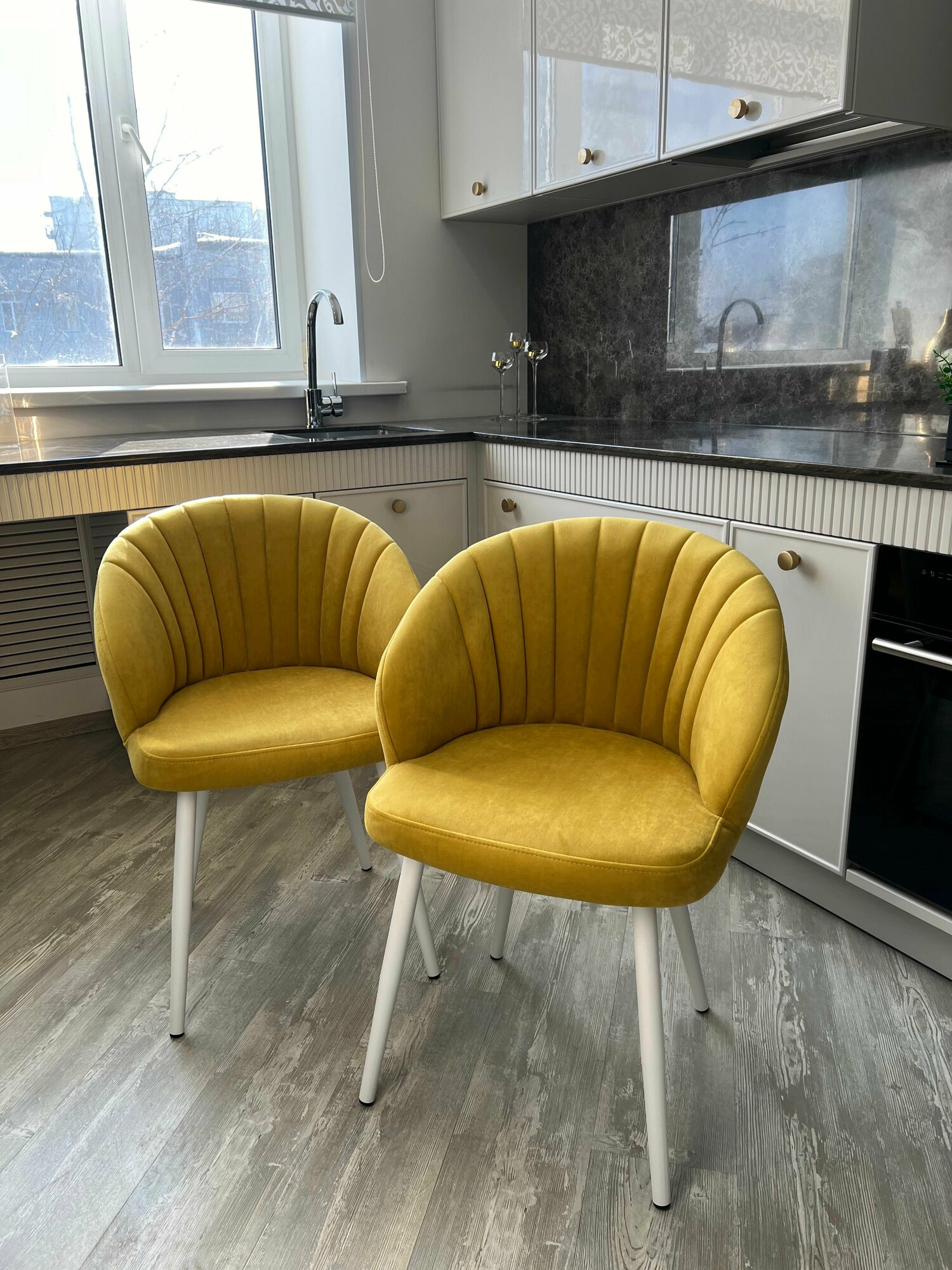 Отзывы на Комплект стульев "Зефир" для кухни желтый с белыми ногами, стулья кухонные 2 штуки