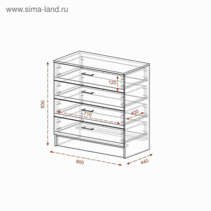 Комод К800-4ящ 4 ящ. 80х44x83 см информация: