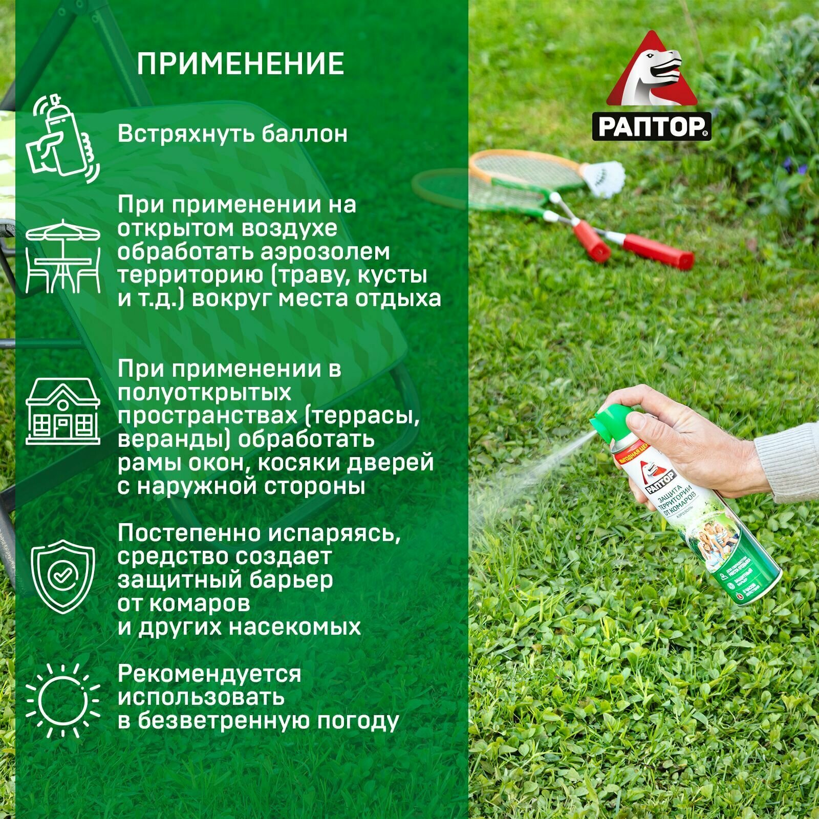 Раптор Аэрозоль для защиты територрии от комаров 400мл информация: