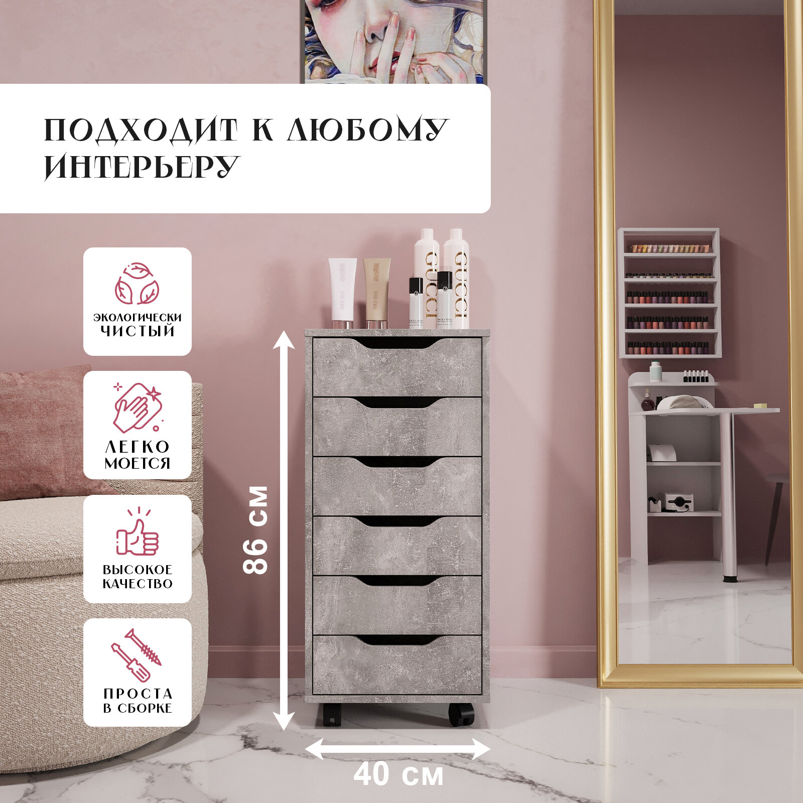 Комод тумба офисная Praga 6 Бетон 400*860*410 информация: