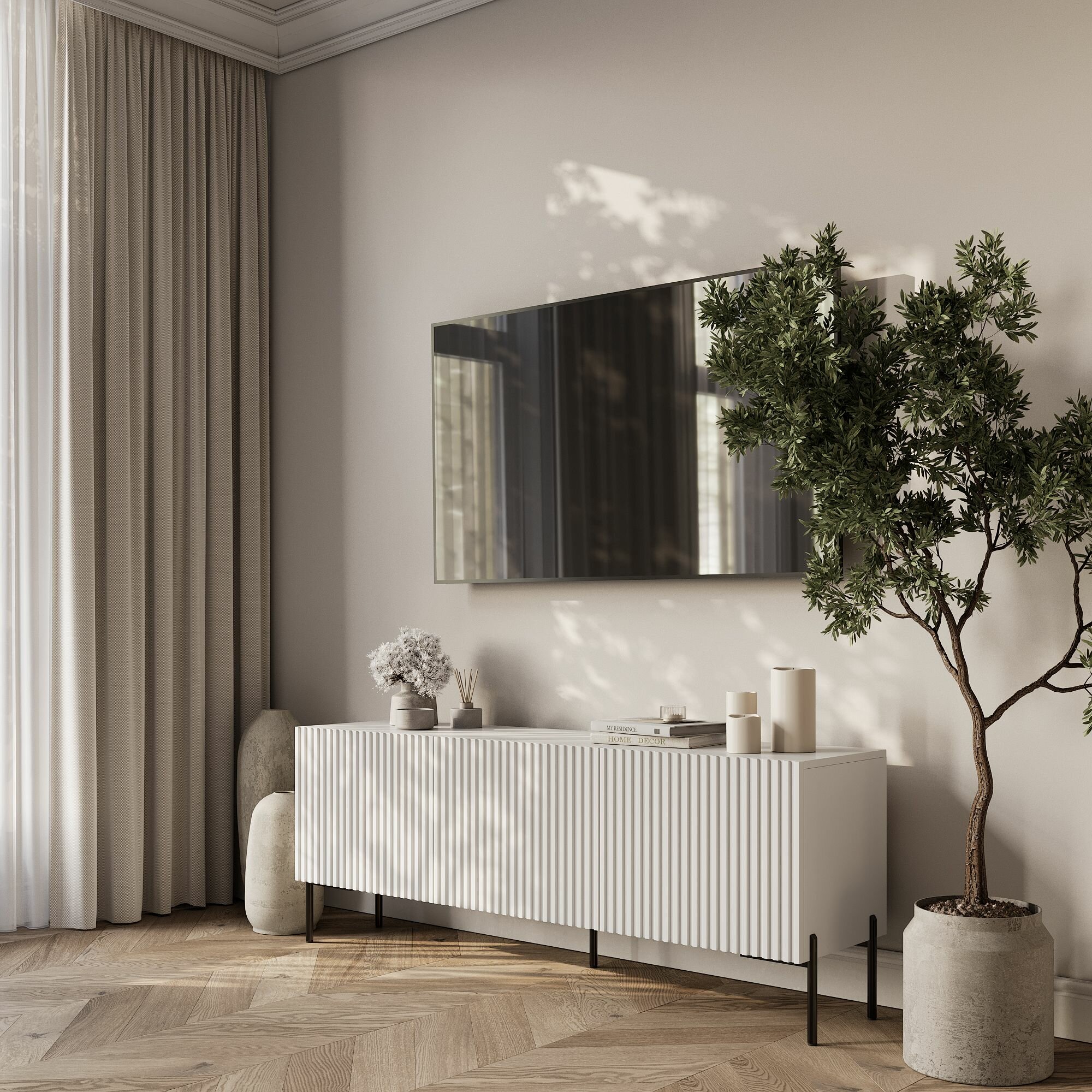 Тумба под телевизор напольная 3 секции белая рифленая рельефная мелкая волна 150*37*57 23 450 ₽