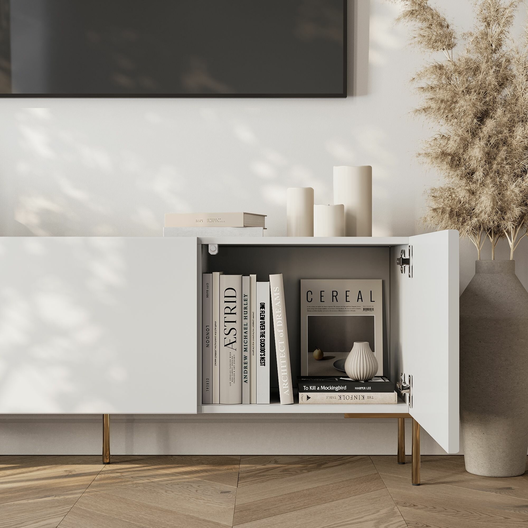 Тумба под телевизор напольная 3 секции белая классическая фасады с рамкой/черные ножки 150*37*57 17 259 ₽