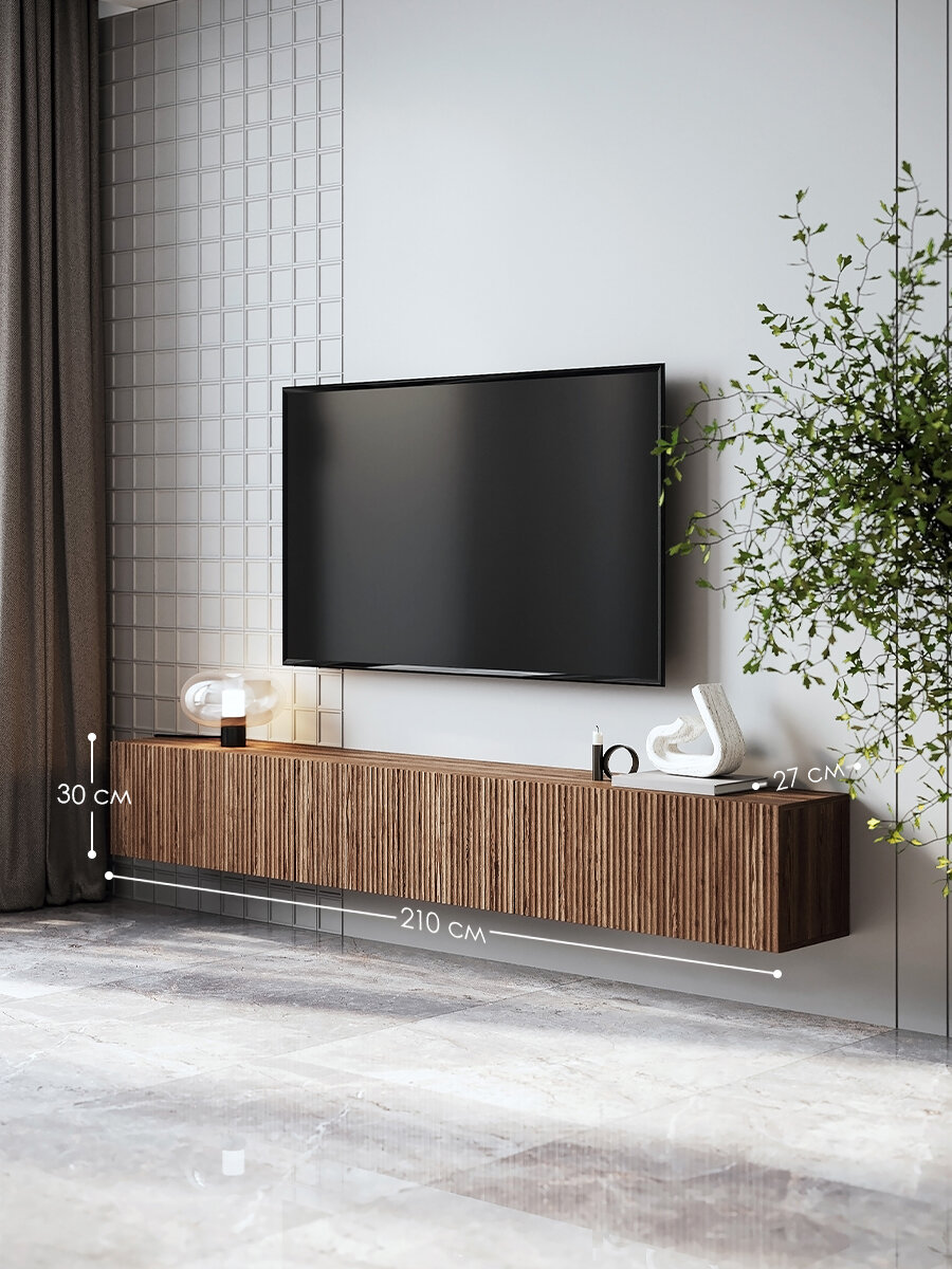 Тумба комод под телевизор Puzzlemebel Камелия, подвесная настенная консоль, 210 см, коричневый (венге) информация: