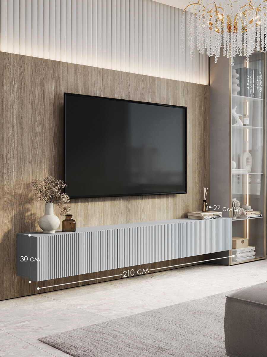 Тумба комод под телевизор Puzzlemebel Камелия, подвесная настенная консоль, 210 см, серый информация: