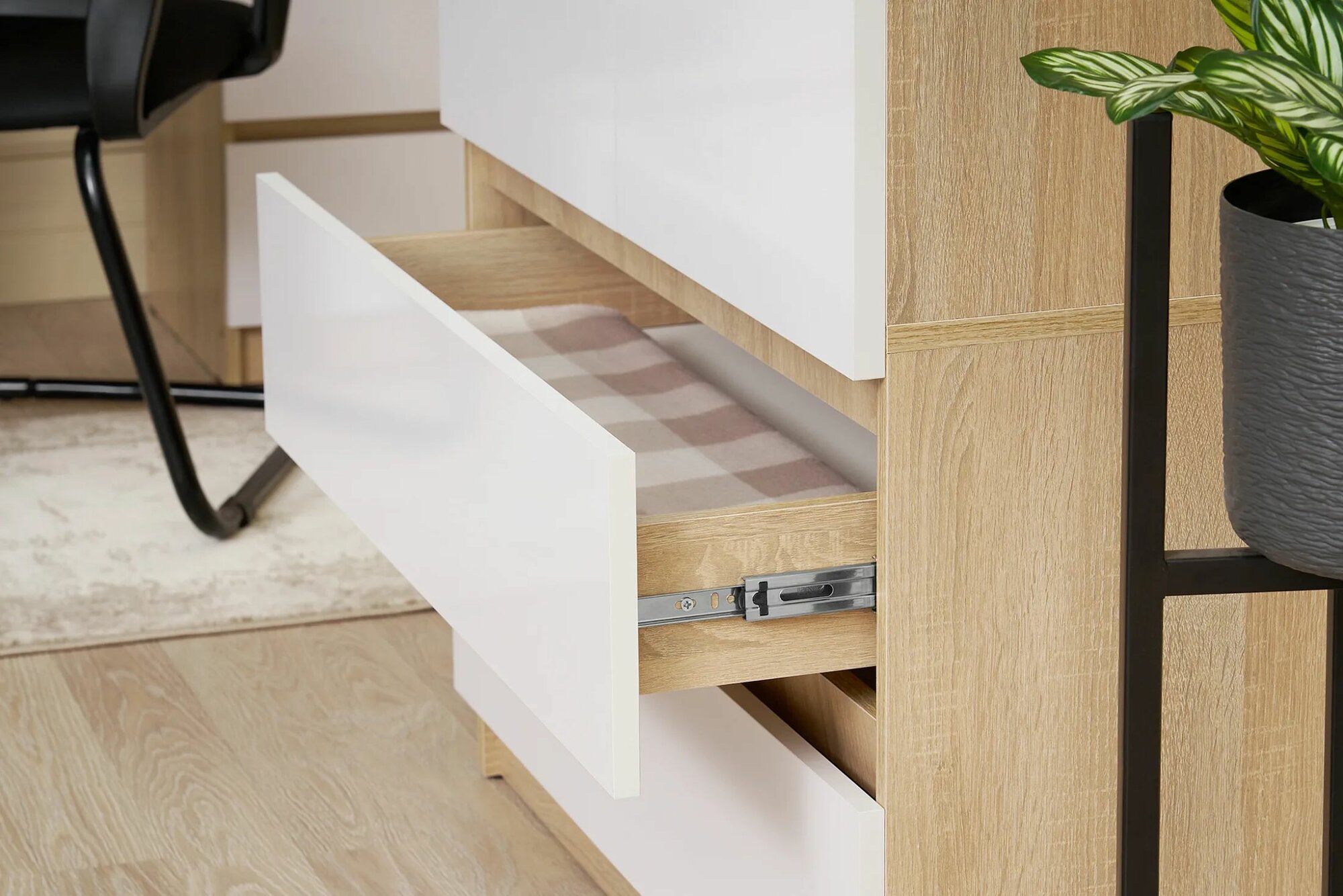 Шкаф для одежды с ящиками Нонтон Челси, дуб сонома / белый глянец, 90 см