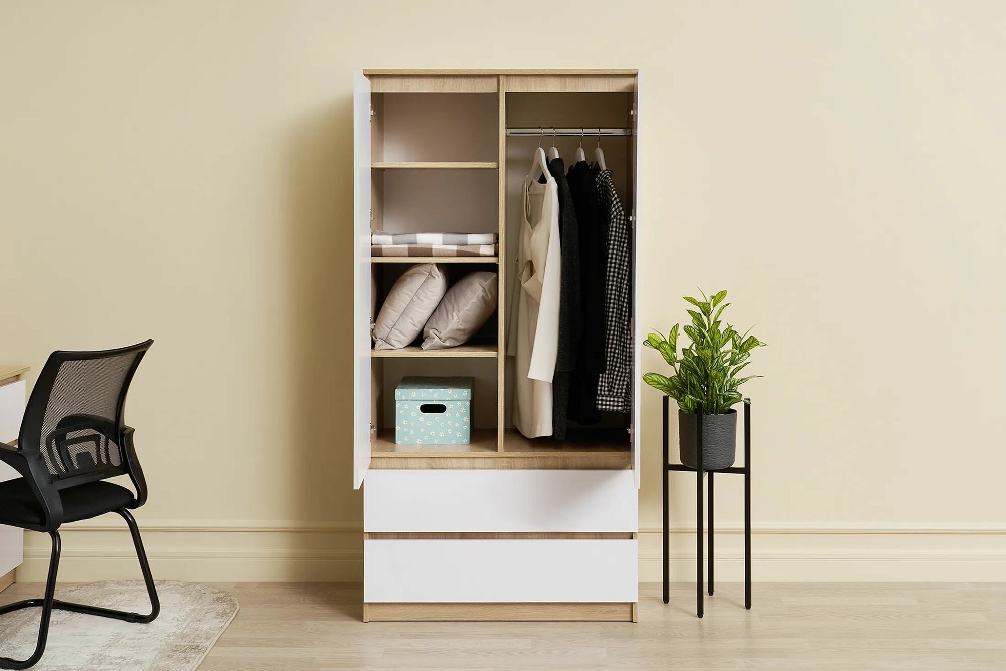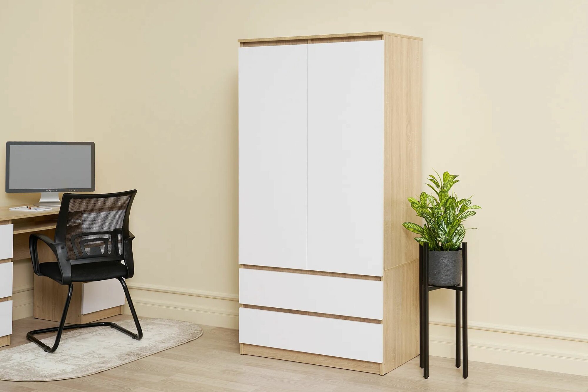 Шкаф Челси 2-створчатый, с ящиками, дуб сонома/белый, 179,6х90,2х51,4 см