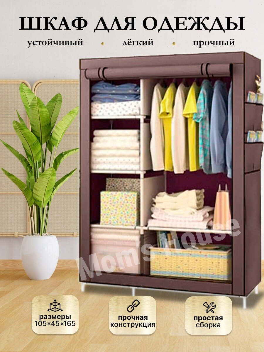 10 цен на Напольный тканевый закрытый шкаф трансформер для одежды большой Система хранения узкий коричневый