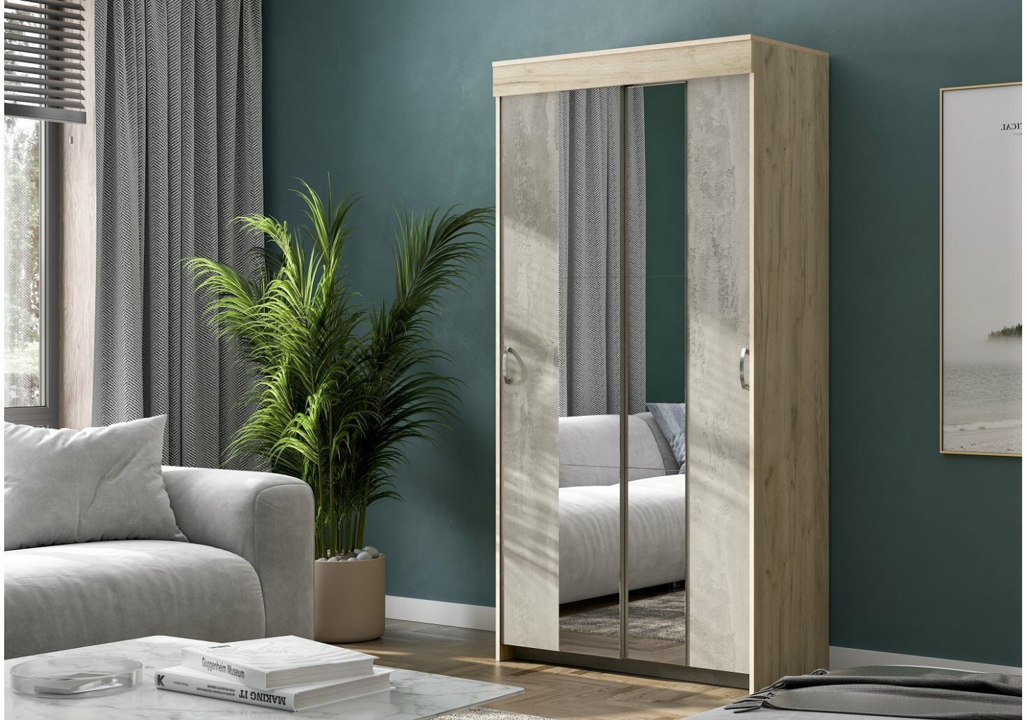 Шкаф-купе для одежды Нонтон Бассо, 2 зеркала, дуб крафт серый / бетонный камень 100 см 14 690 ₽
