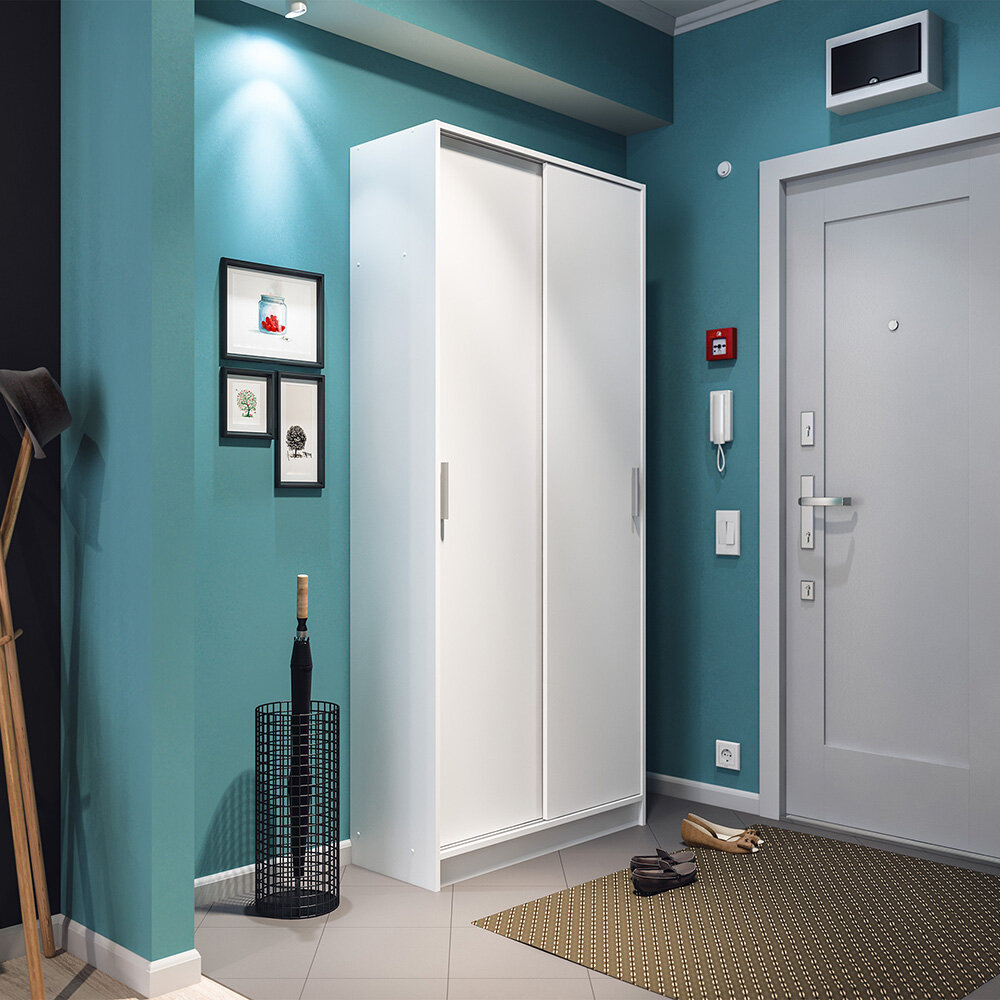 10 цен на Двухдверный шкаф-купе столплит Терра СБ-2545 с выдвижной штангой и 5 полками, Белый 90х200х35 см