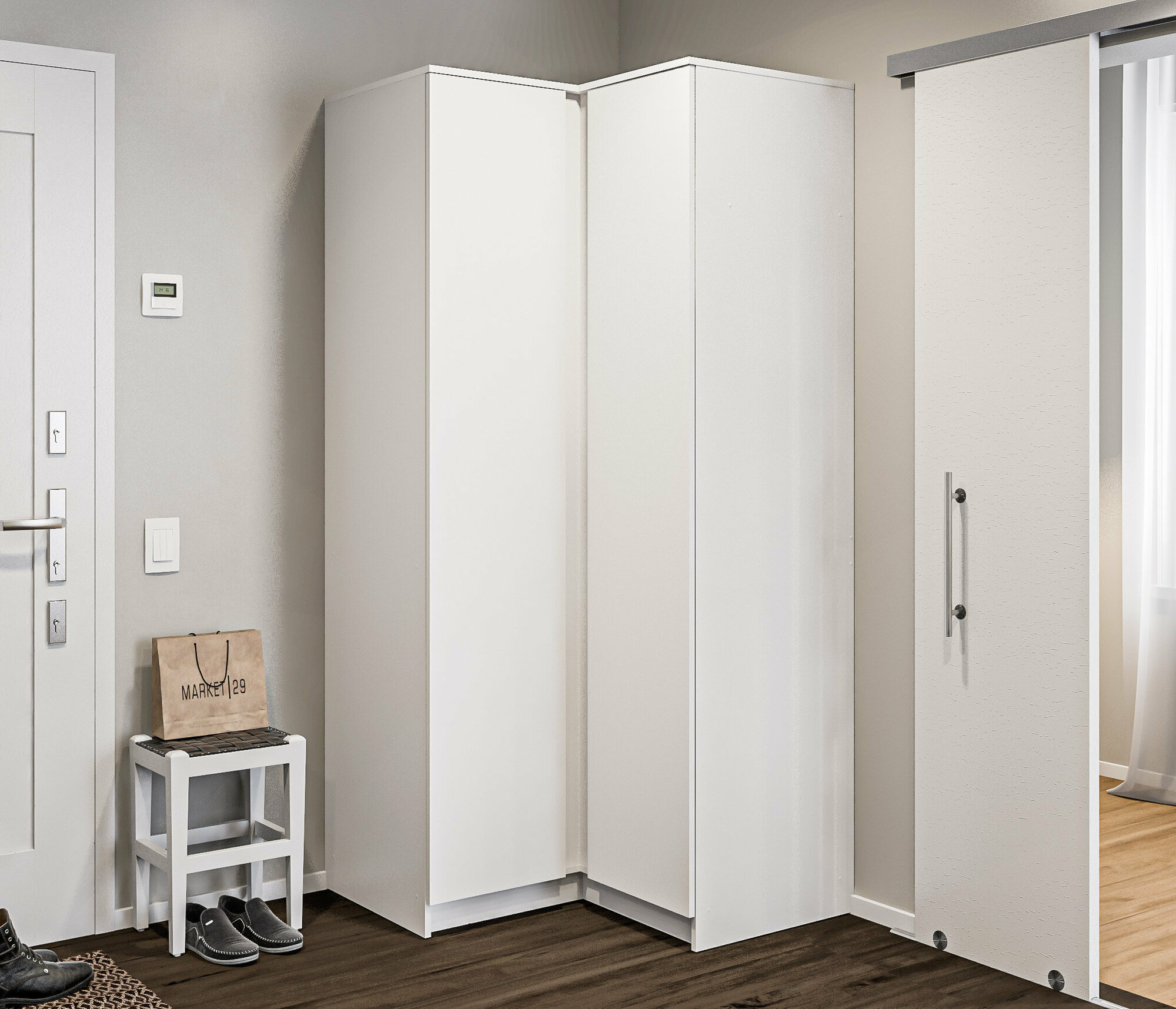 Шкаф Локер "Push to Move" Левый, 81х52.5х220, Мебельная компания Е1, Белый снег