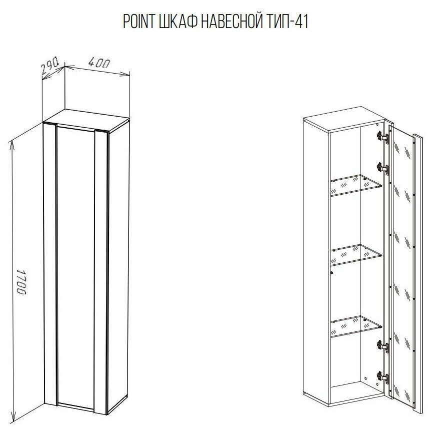 POINT ТИП-41 шкаф-витрина навесной, 40 х 170 х 29 см, МДФ/ЛДСП, Белый/Белый глянец 8 165 ₽
