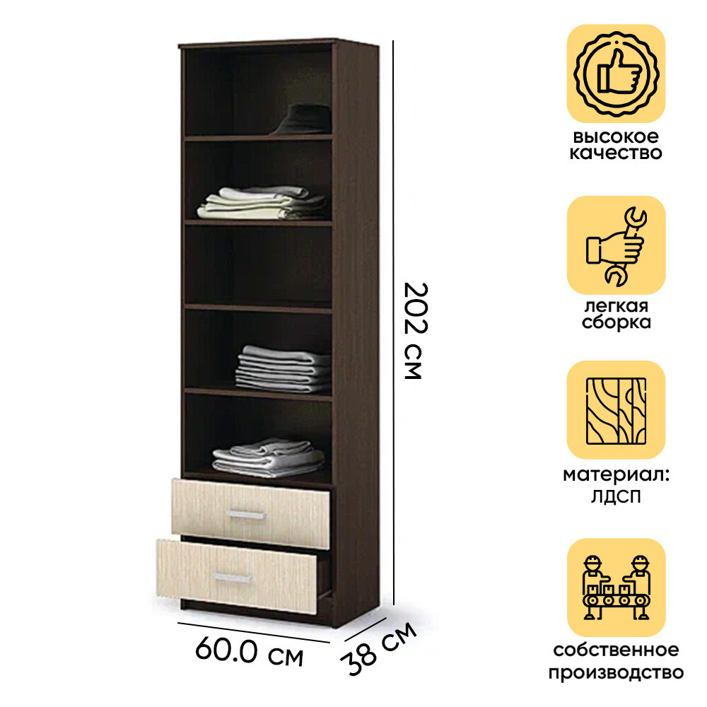 10 цен на Шкаф распашной Машенька 2х створчатый с выдвижными ящикам ШК 201, Венге/Дуб белфорт