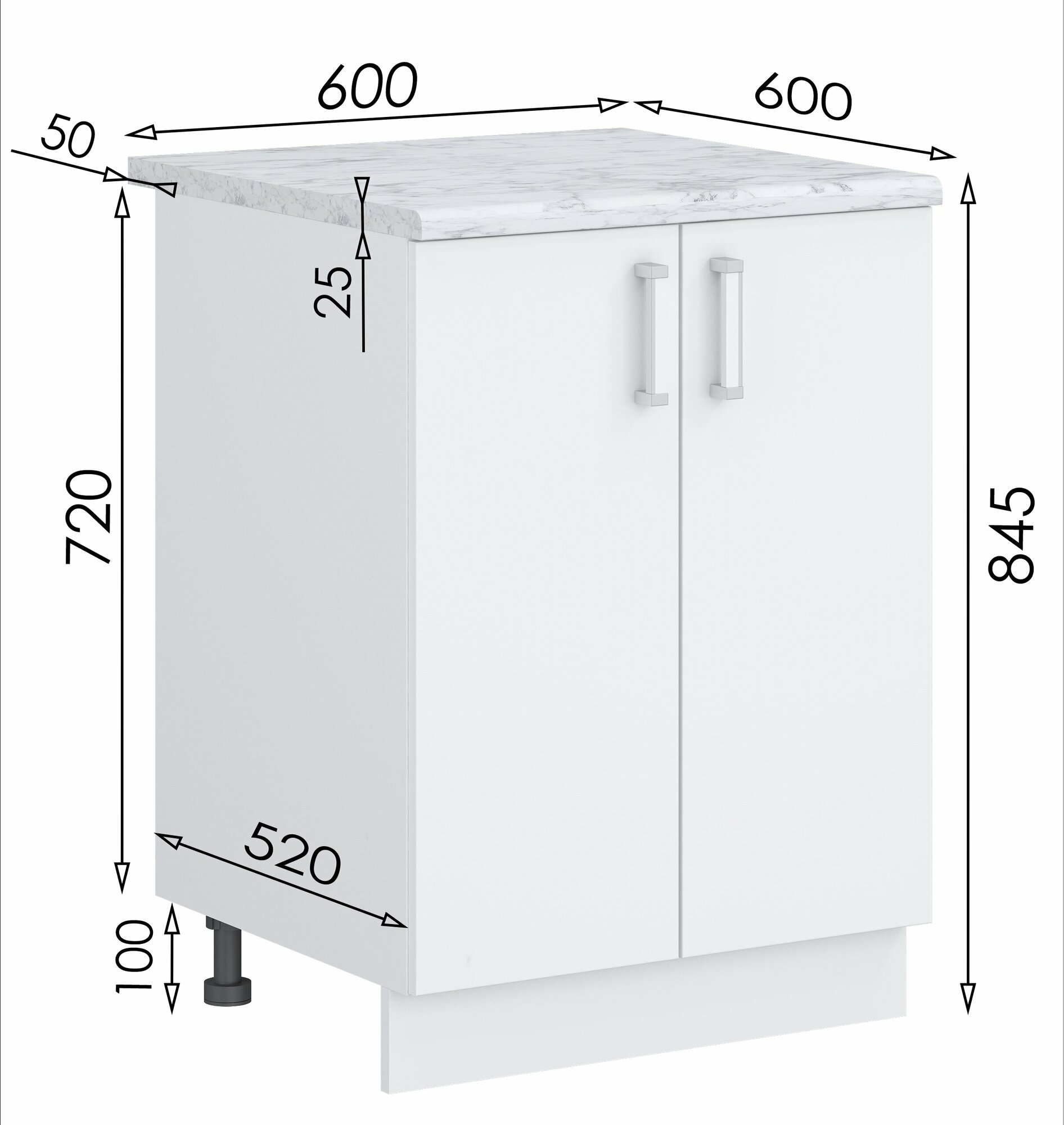 Кухонный модуль №9 под мойку со столешницей шкаф нижний напольный ЛДСП 60х60х84.5см белый мрамор информация: