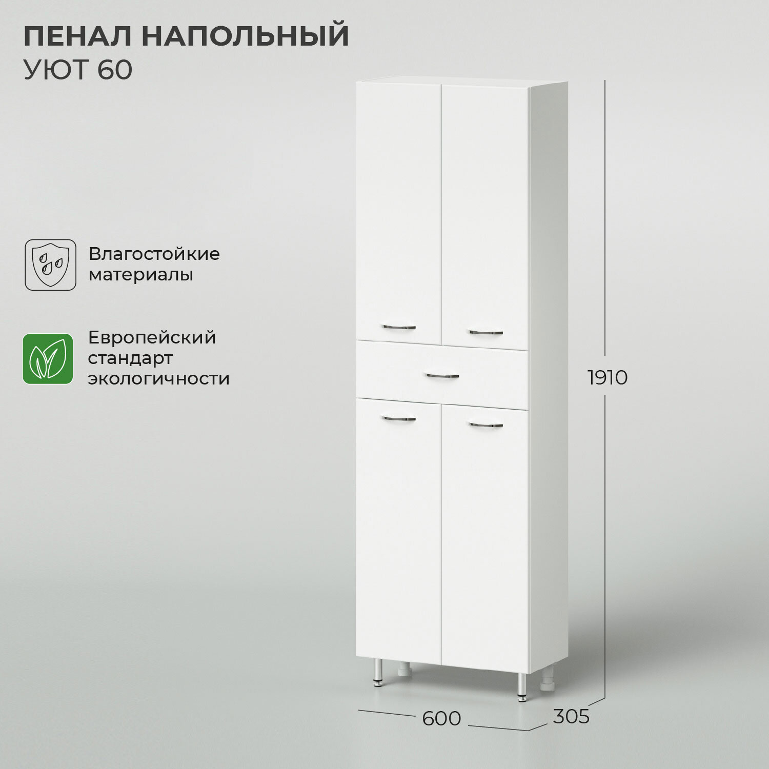 Шкаф пенал для ванной Уют 60 600х305х1910 напольный информация: