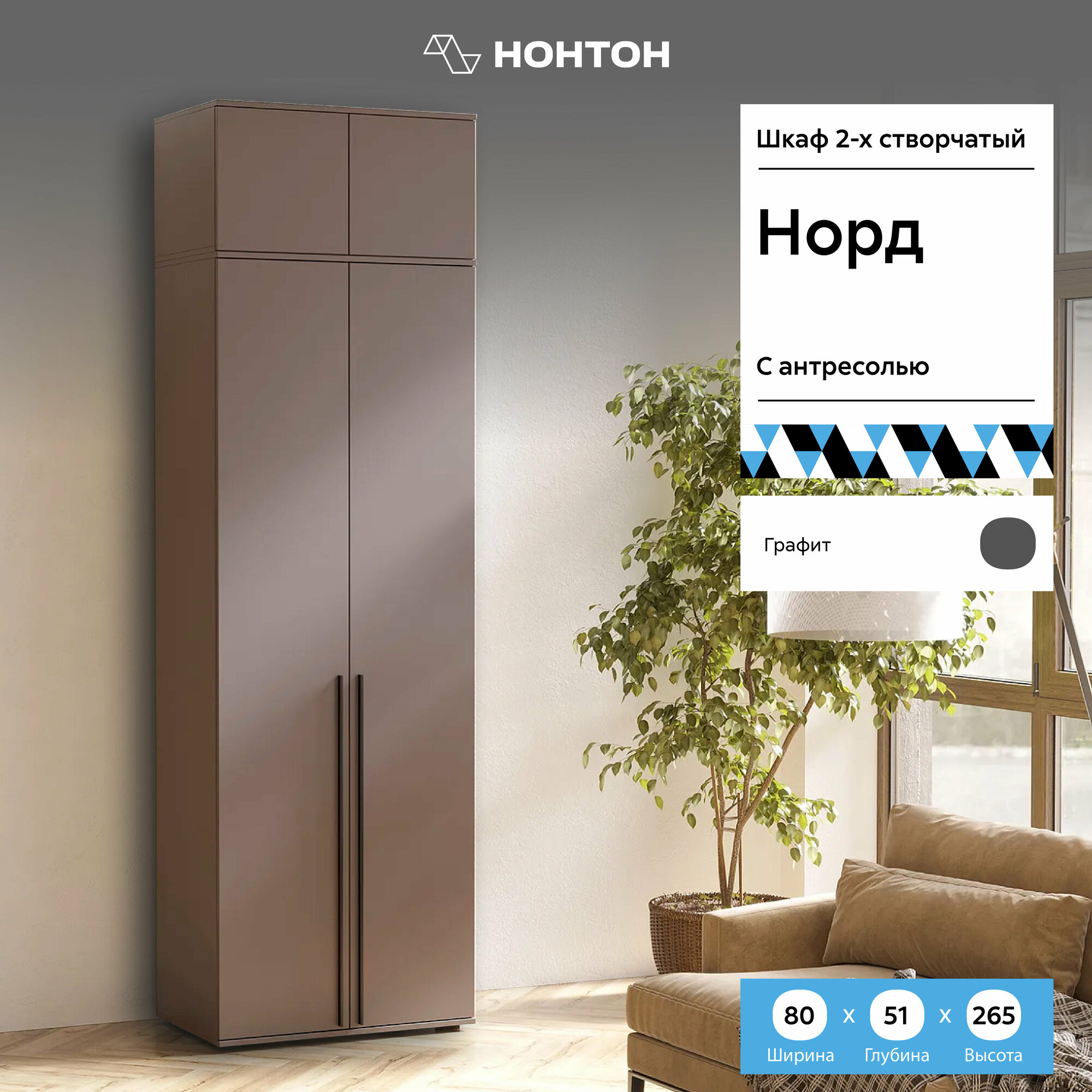 Шкаф 2-х ств. Норд + антресоль 800х2654х510 мм Графит информация: