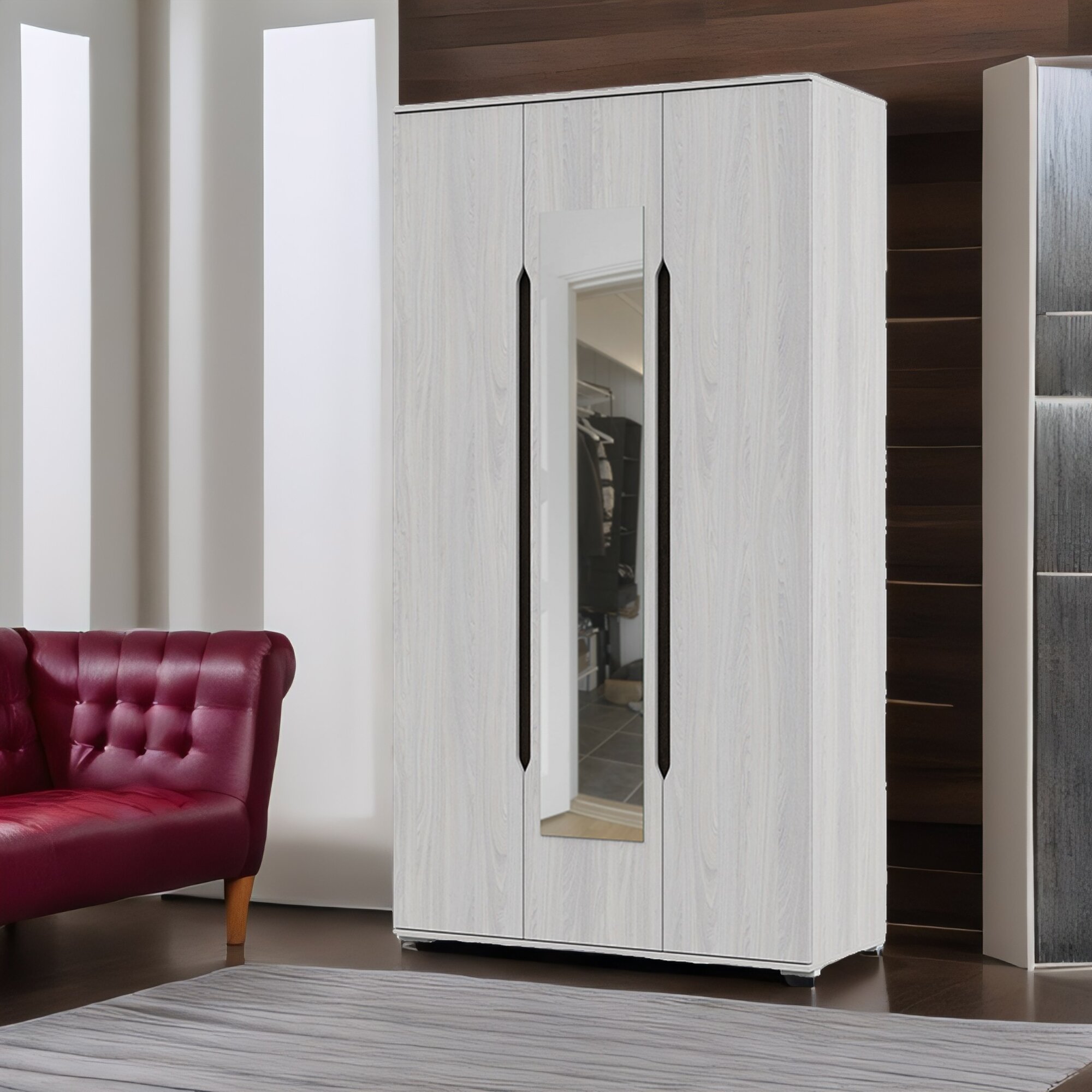 | Особенности | дверь со стеклом, модульный, с зеркалом, штанга для вешалок |