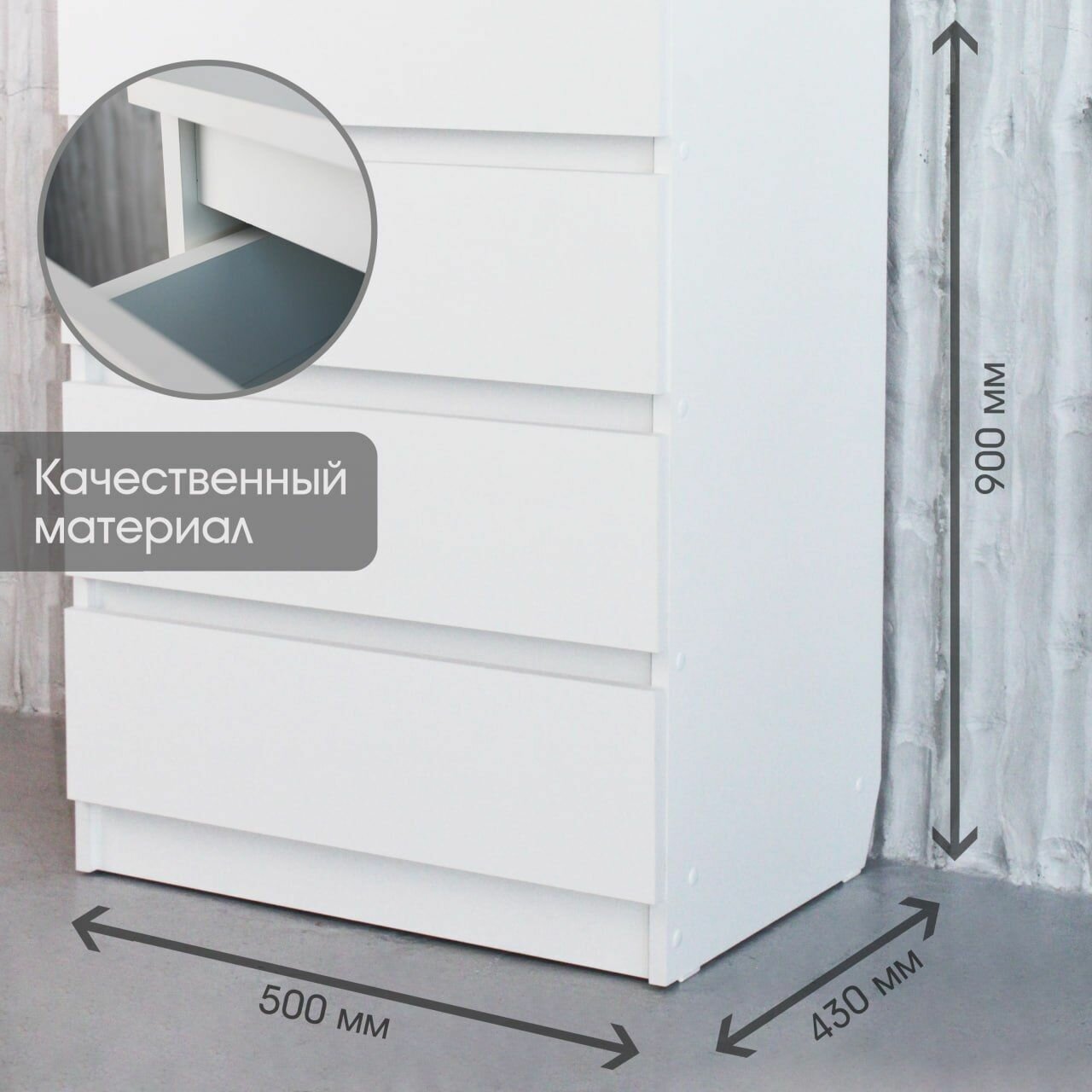 | Дополнительная информация | Вырез под плинтус, позволяет поставить комод вплотную к стене и не упереться в плинтус. |