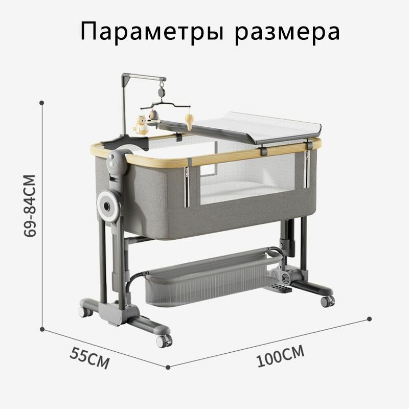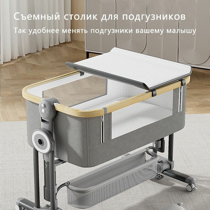Кроватка трансформер для новорожденных 6 в 1, цвет серо белый