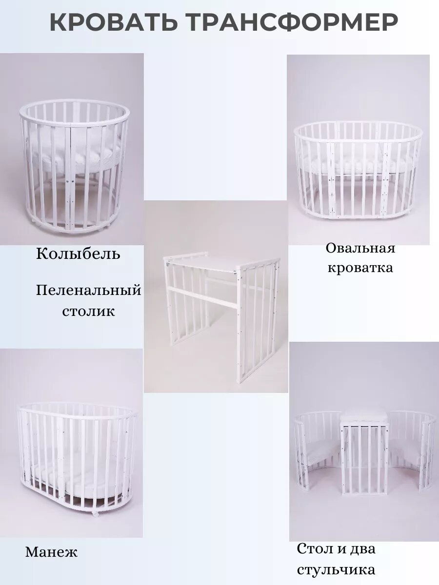 Кроватка детская для новорождённых кругля трансформер с маятником информация: