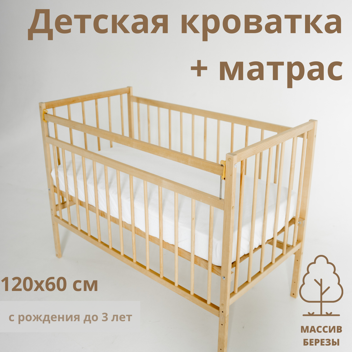 Детская кроватка и матрас для новорожденных 120 60 Промтекс Колесо качалка, цвет натуральный информация: