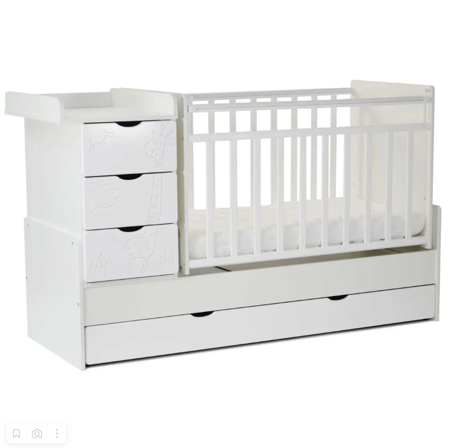 Кровать трансформер 3 ящика, маятник поперечный фасад-жираф, белый Арт. 550031
