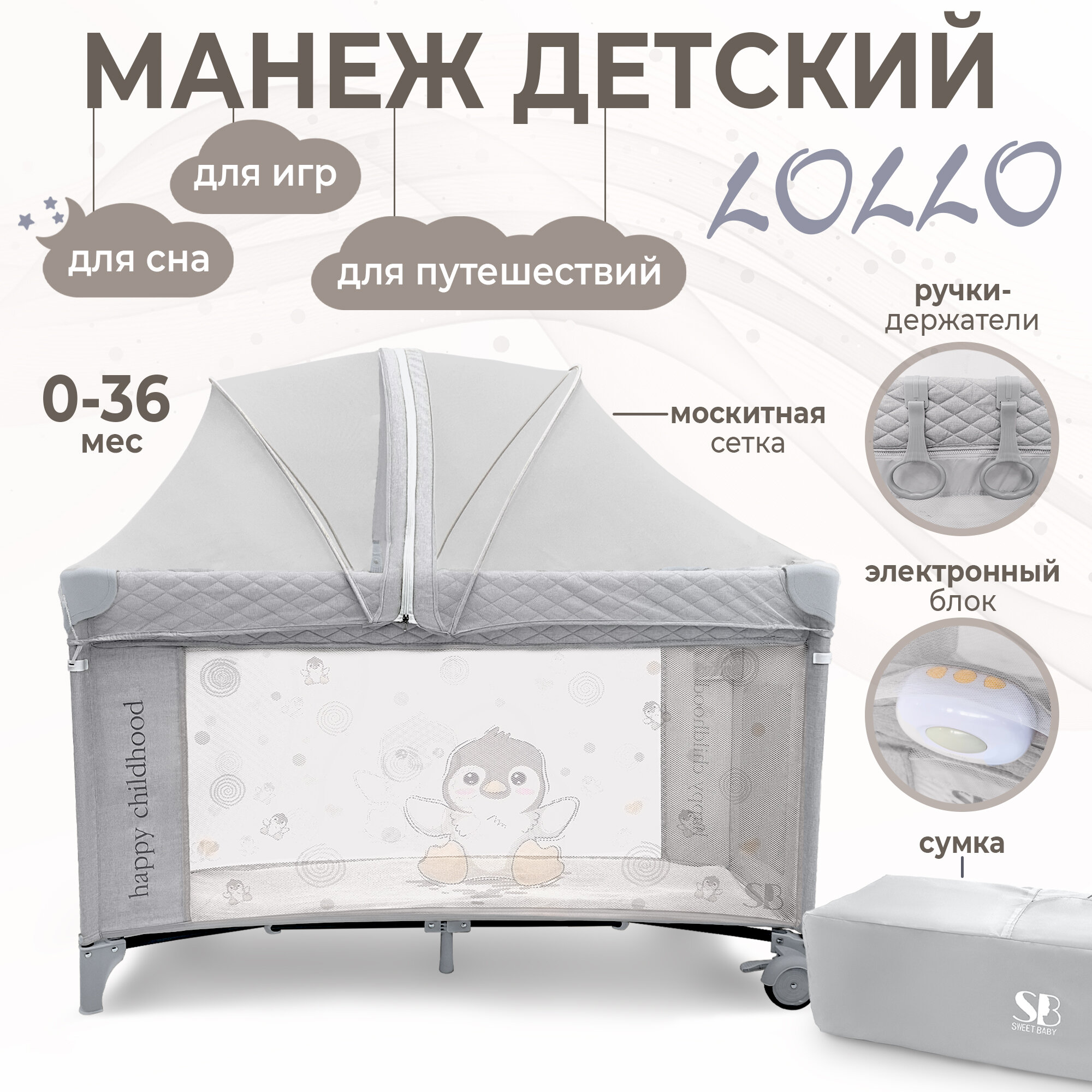 Манеж Sweet Baby Lollo Grey Penguin информация: