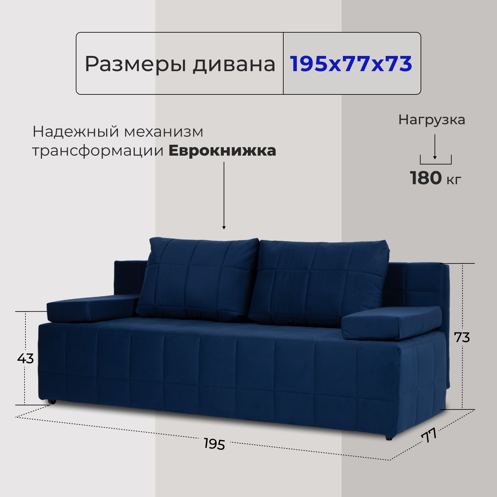 Диван-кровать Вентура, синий, механизм Еврокнижка 195х77х73 см информация: