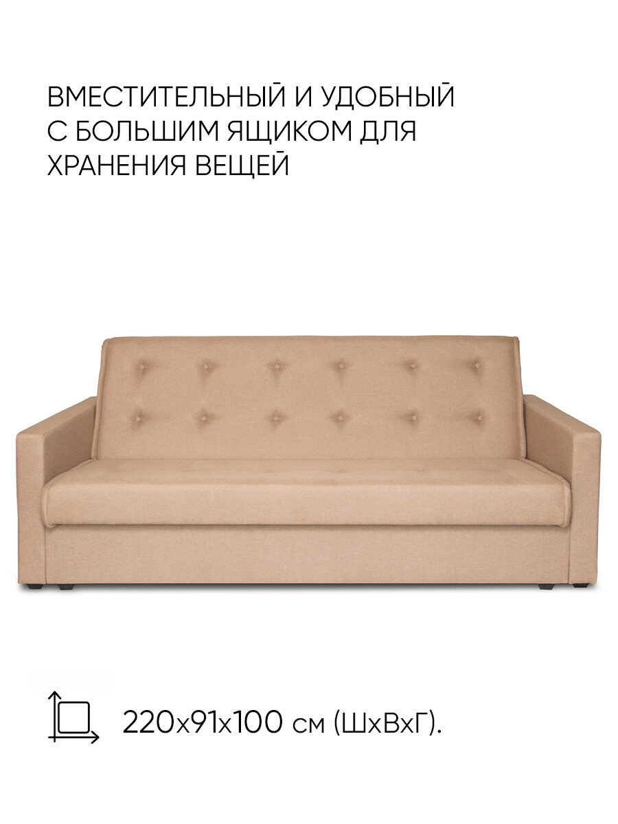 Диван кровать раскладной с подлокотниками и ящиком, 217х100х91 см, Бежевый Лагуна 130 информация: