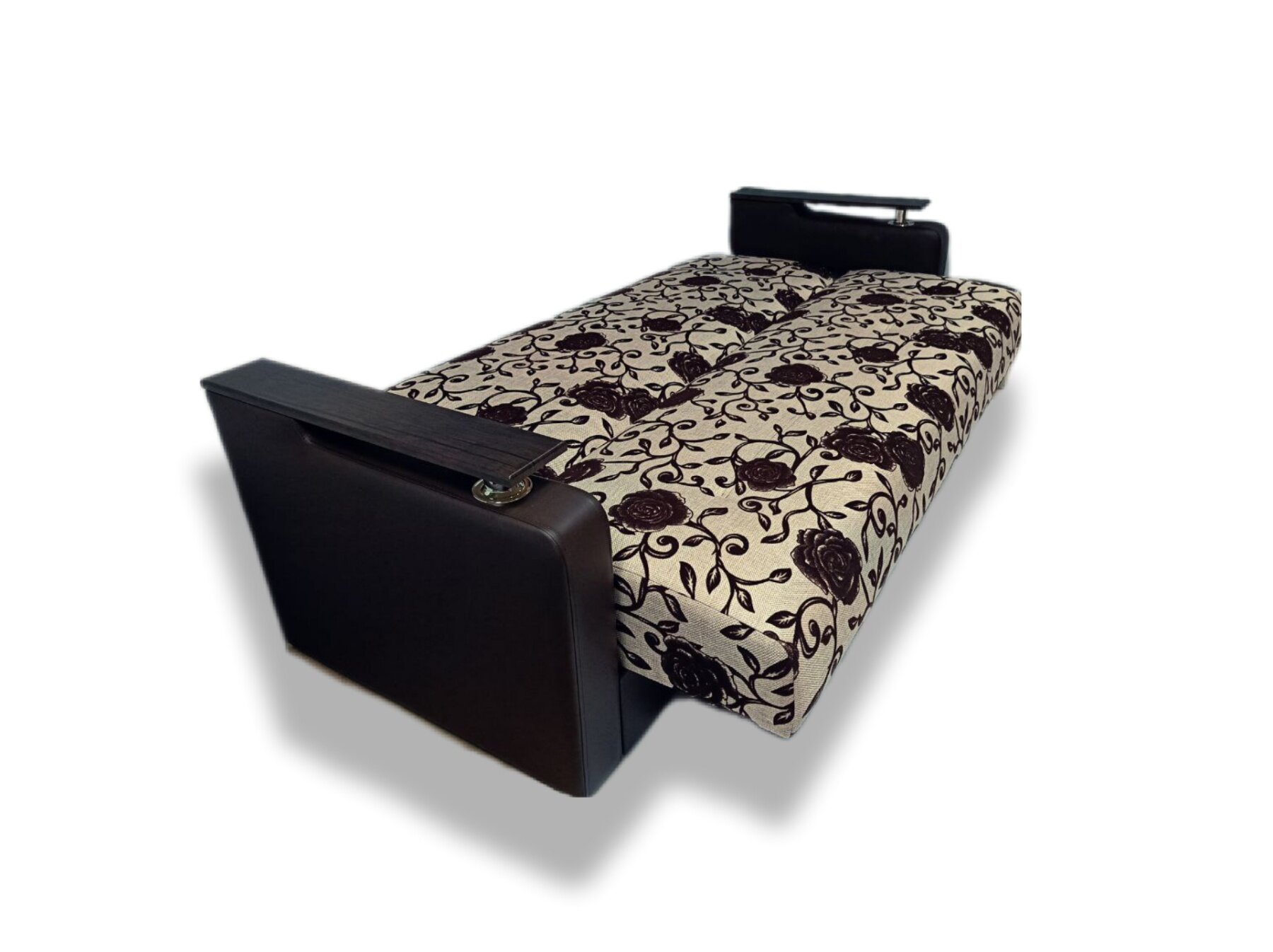 Диван книжка "Вега" прямой на пружинном блоке, рогожка, коричневый, розочки информация: