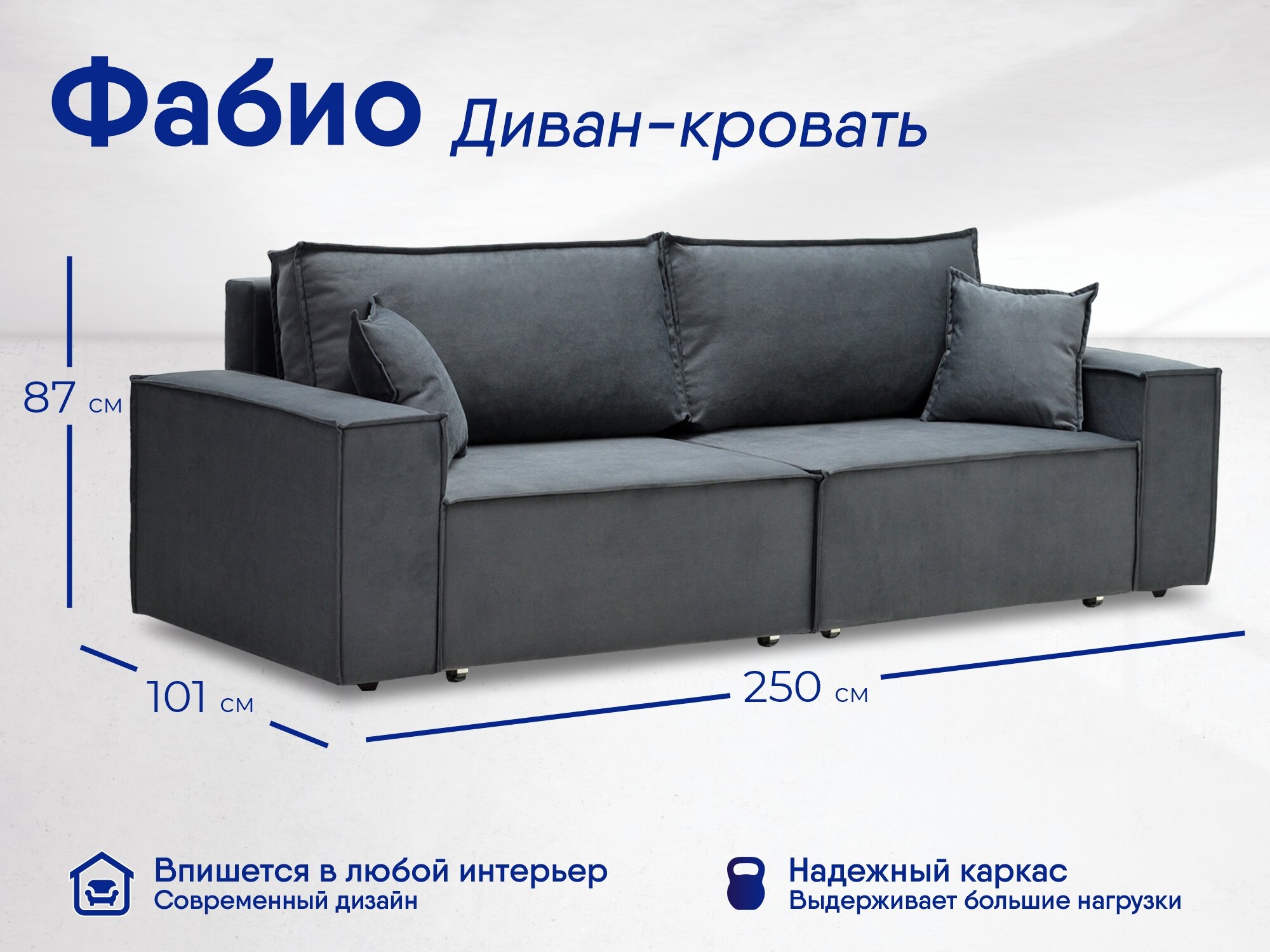 Отзывы на Диван-трансформер Фабио, размер: 250х101х87см, еврокнижка, спальное место: 200х151см, велюр Киви 91