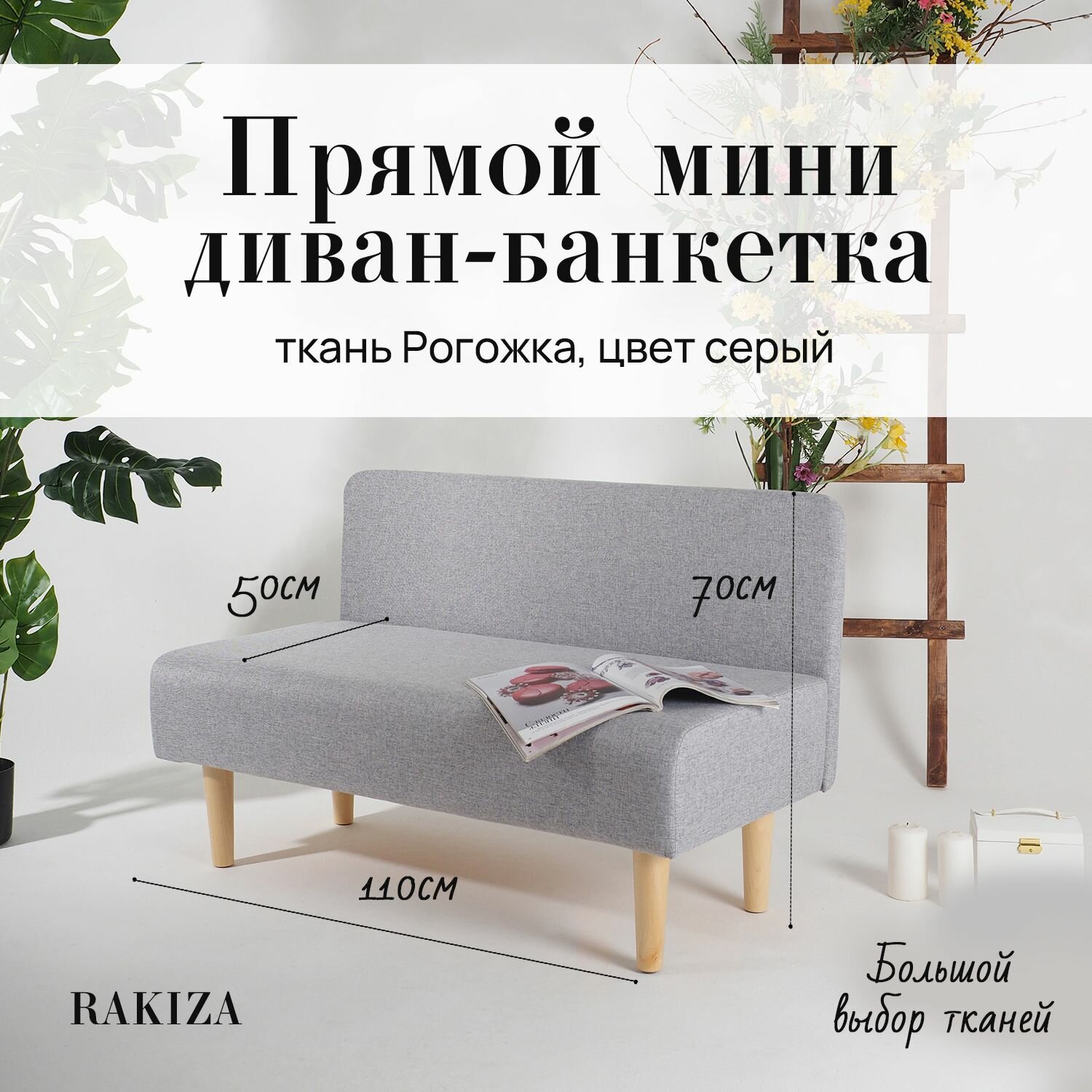 10 цен на Диван, RAKIZA mini, велюр, на кухню, в офис, в прихожую, банкетка, на балкон, в детскую, мини диван, в салон красоты, прямой, серый (Ш110-Г50-В70см)