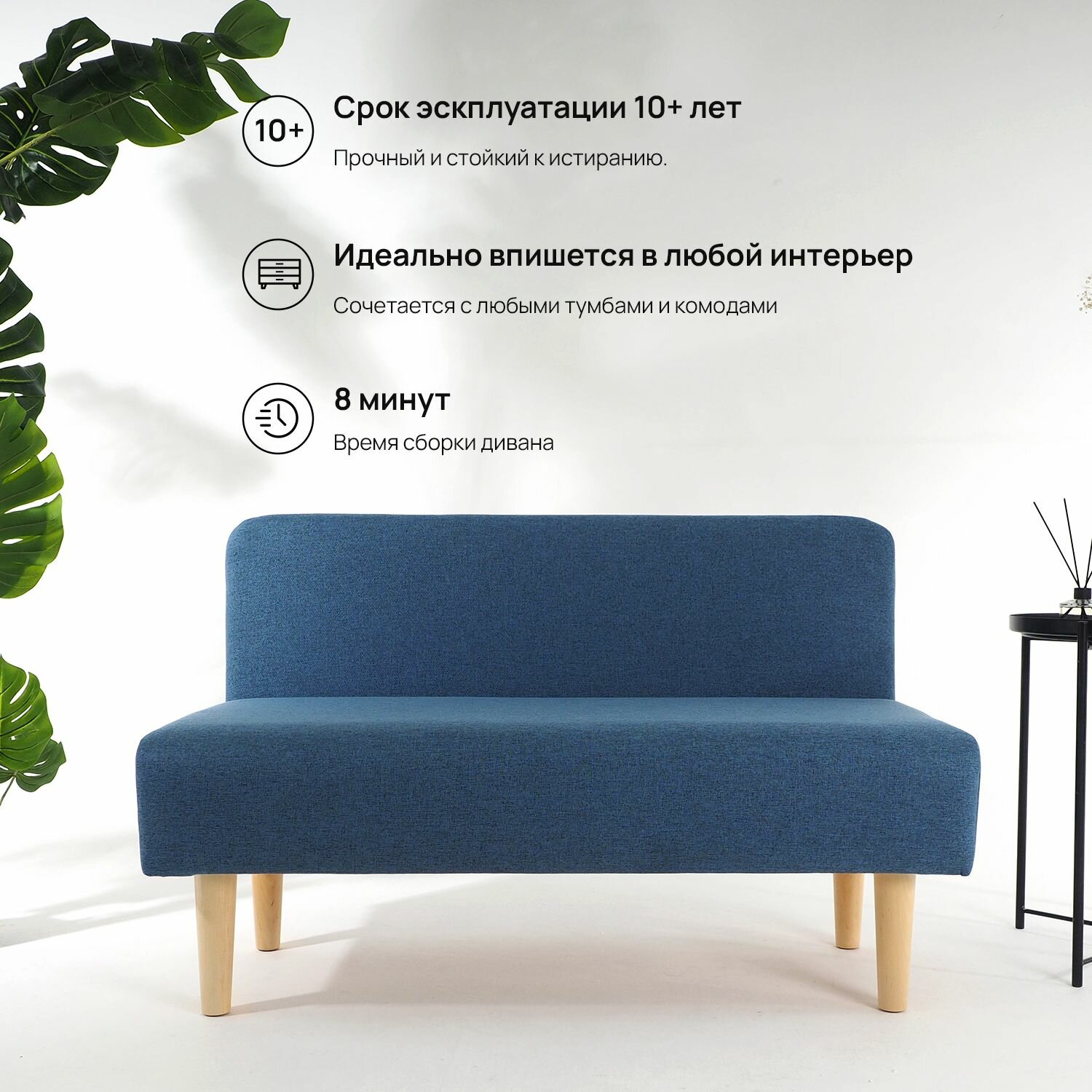 Отзывы на Диван, RAKIZA mini, велюр, на кухню, в офис, в прихожую, банкетка, на балкон, в детскую, мини диван, в салон красоты, прямой, синий (Ш110-Г50-В70см)