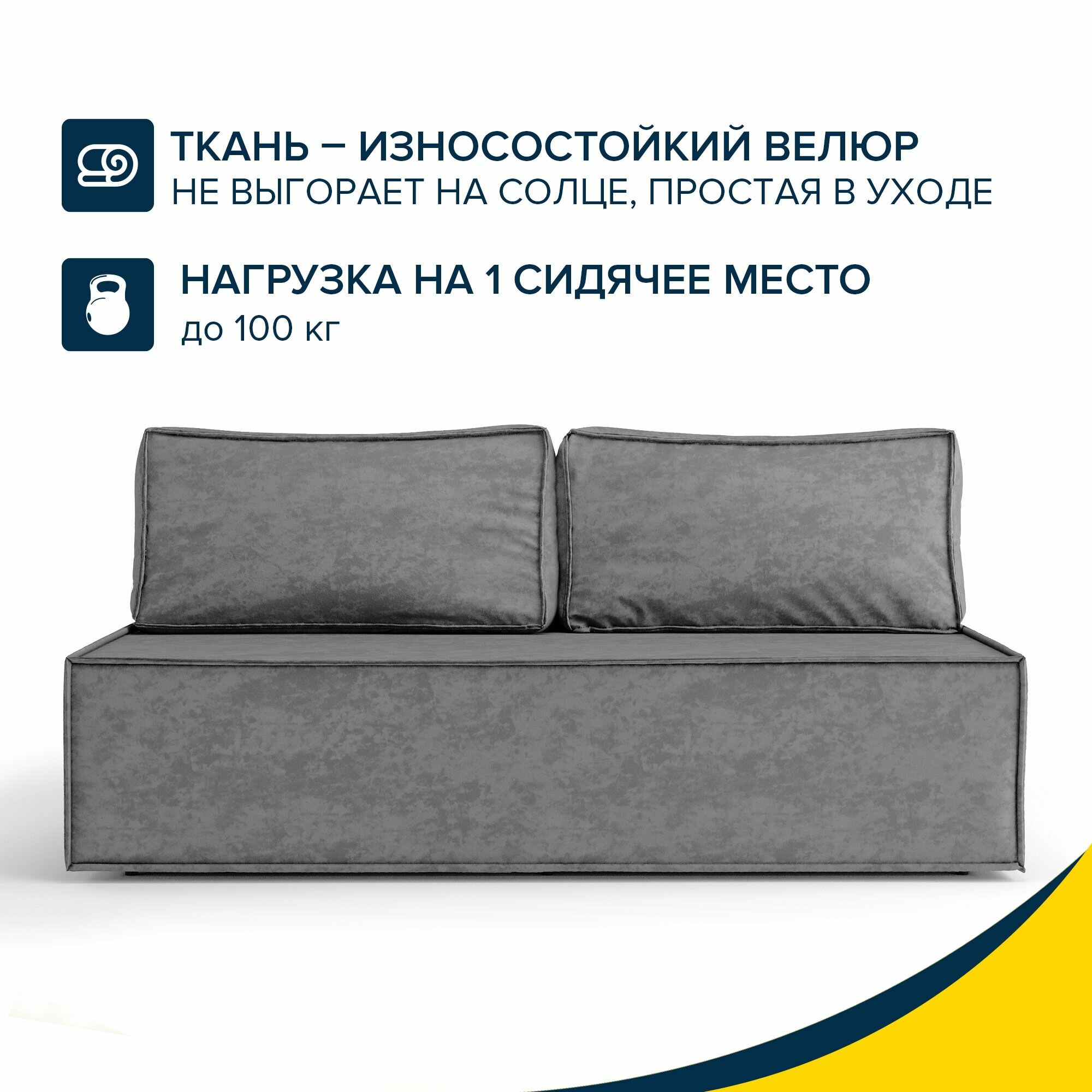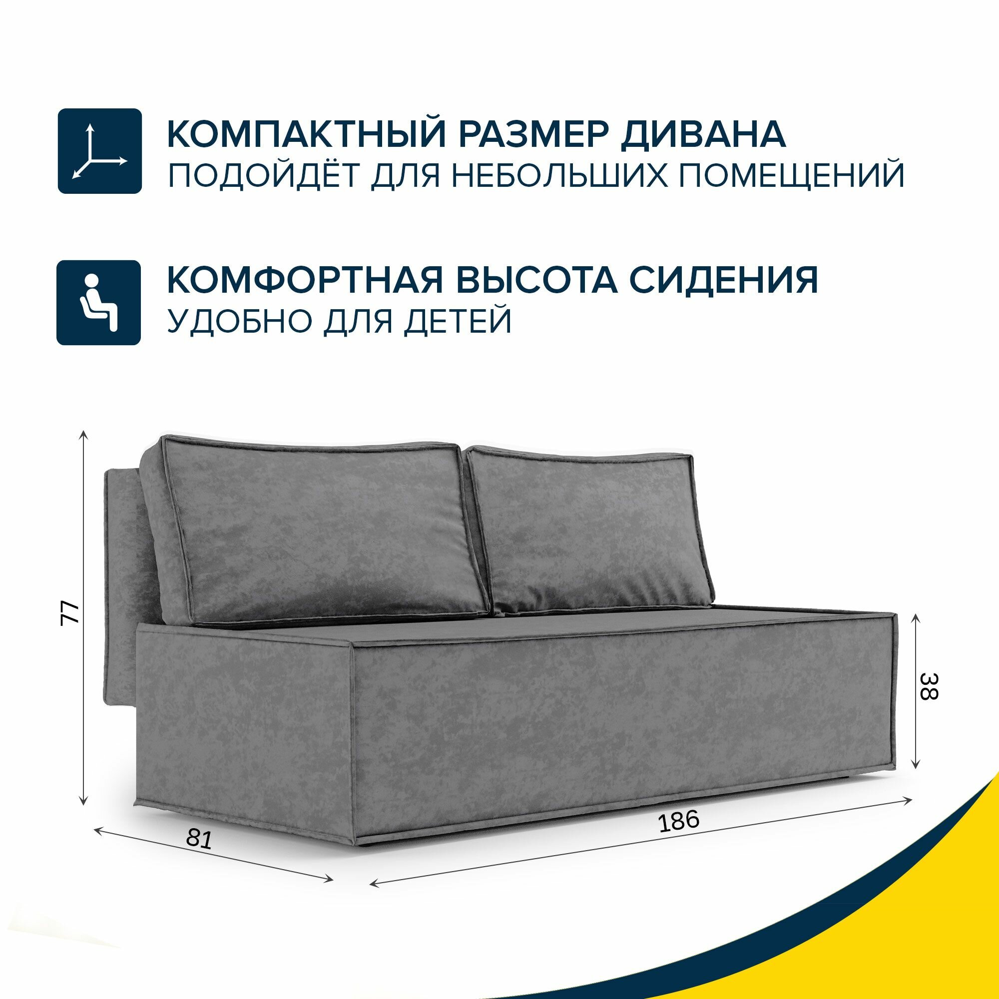 Диван-кровать прямой Beneli киото, темно-серый, велюр, механизм Еврокнижка, 186х81х77 см, 1шт информация: