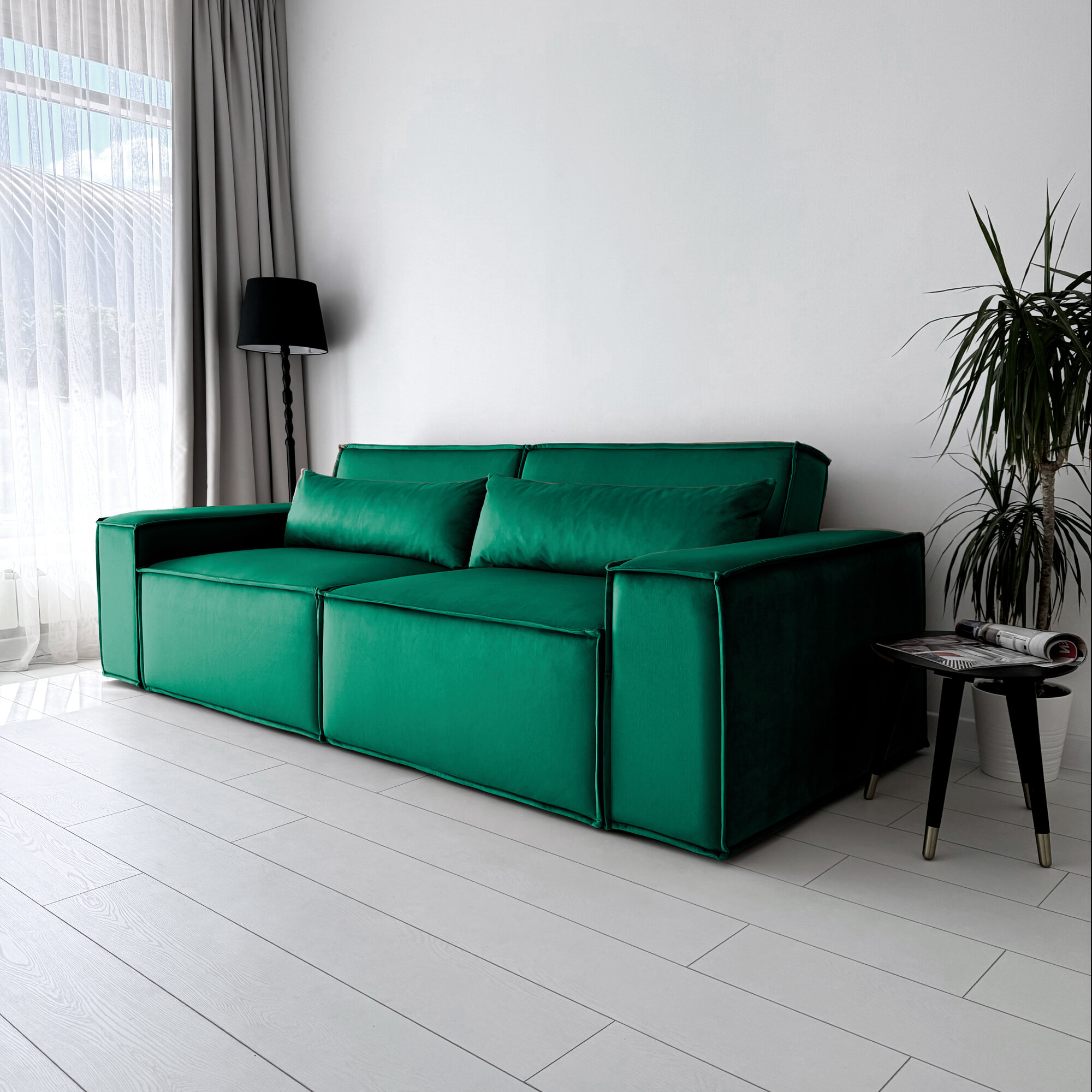 Диван-кровать Redsofa Пикассо 260 см изумрудный антивандальный. Раскладной прямой диван со съемными чехлами, для дома и офиса. информация: