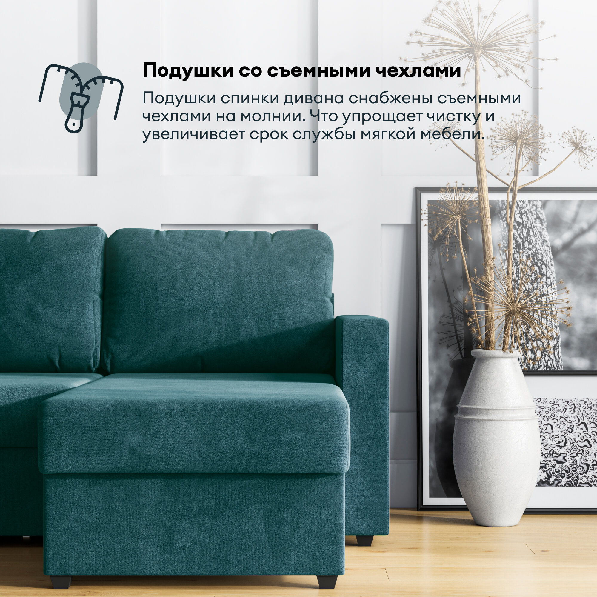 Угловой диван-кровать, HYPNOZ Denver, механизм Дельфин, Зелёный, 221х153х85 см информация: