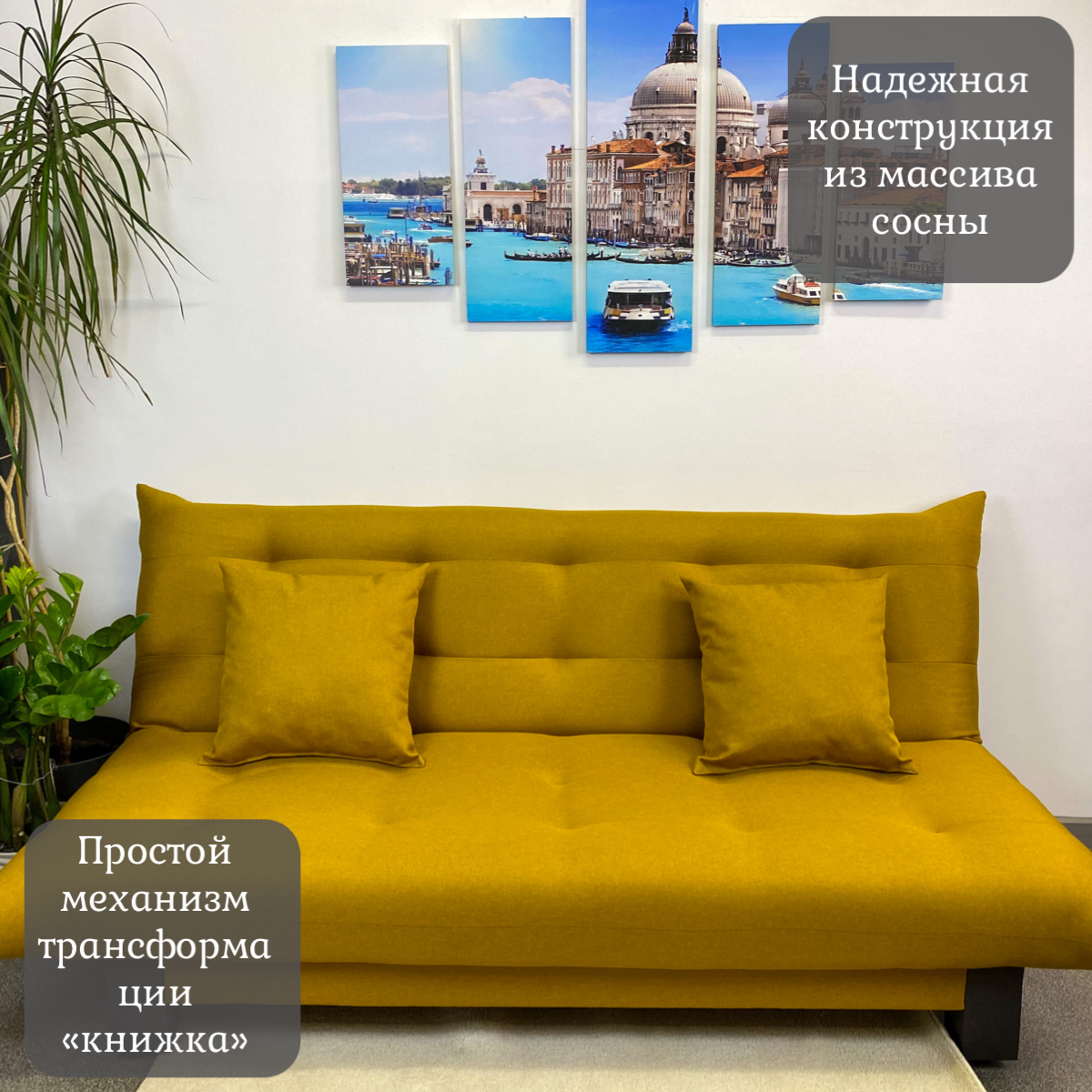 Диван EDLEN Поло Стайл, книжка, рогожка yellow, 202х90х100 см, для дома, дачи и офиса информация: