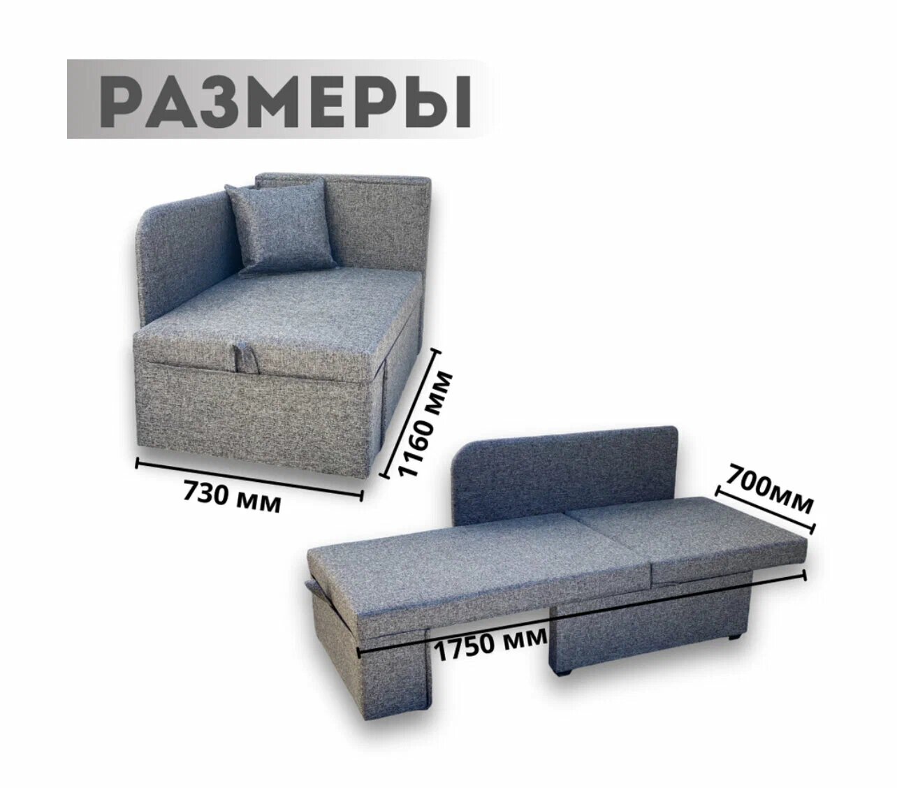 10 цен на Кушетка "Малыш" с раздвижным спальным местом и ящиком темно-серый левый